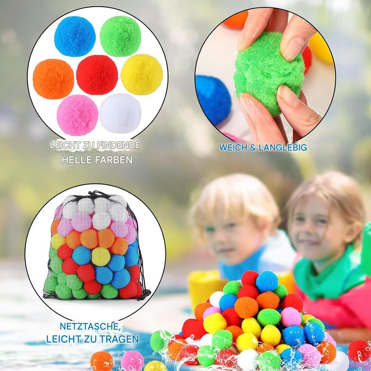 Stabilità con fattore di divertimento: queste palline di spugna aspiranti ad acqua sono perfette per giochi di gruppo. Rapido assorbimento dell'acqua combinato con cotone PP indeformabile garantisce prestazioni affidabili durante le attività all'aperto. Regalo creativo: delizia i bambini con le palle di spugna ad acqua come espressione di amore e cura, un regalo prezioso in tutto il mondo per feste di compleanno, vacanze, feste di Natale e celebrazioni annuali piene di divertimento. Uso flessibile: perfetto per piscina e giochi in giardino, aumenta il divertimento sui trampolini e nei parchi acquatici per un intrattenimento personalizzabile ovunque Divertimento dell'acqua duraturo: massimo divertimento grazie al rapido assorbimento dell'acqua. Perfetto per giochi continui e allenamenti all'aria aperta: attività semplice e coinvolgente per bambini e adulti con un fattore divertente di lunga durata. Divertimento in acqua sostenibile: il robusto sacchetto in rete mantiene le palline di spugna riutilizzabili sempre a portata di mano per giochi d'acqua interattivi in giardino o in piscina