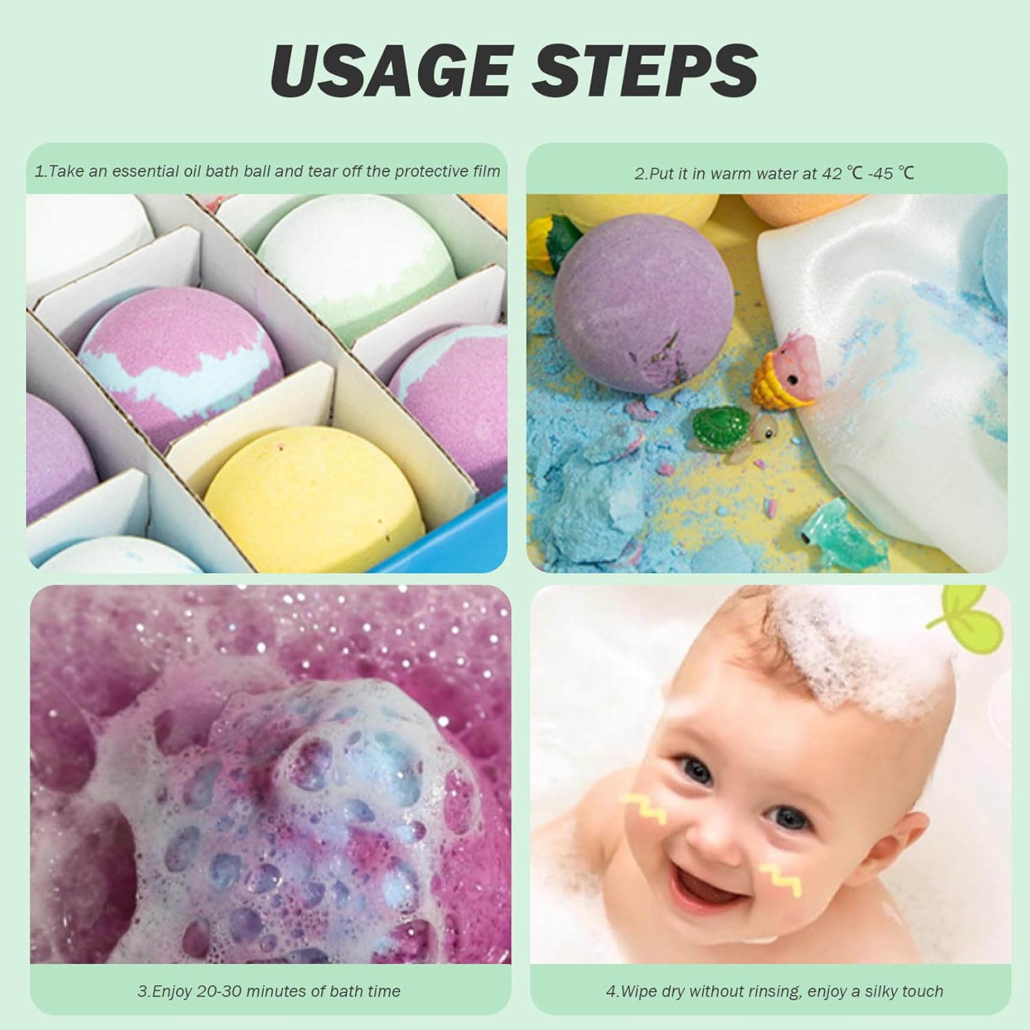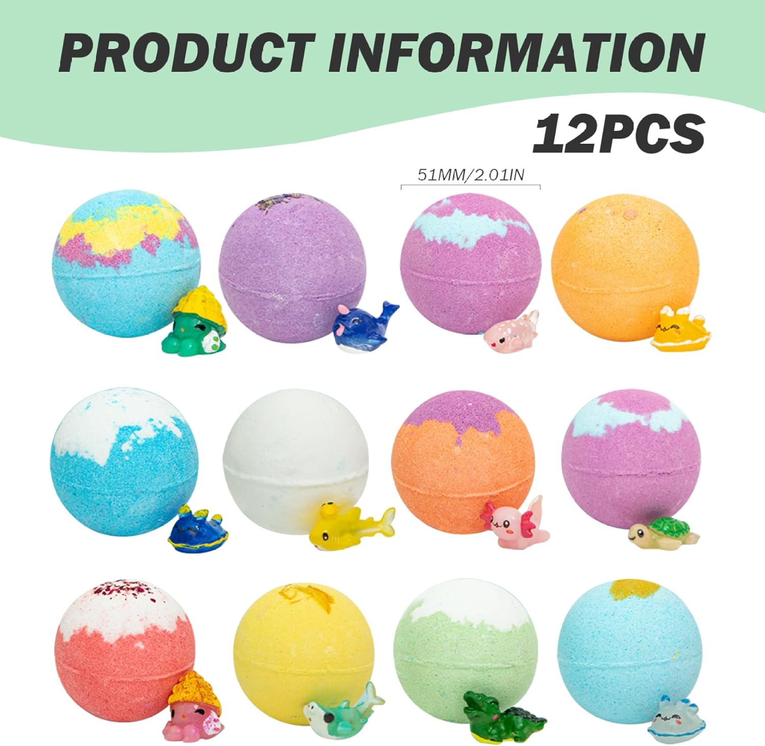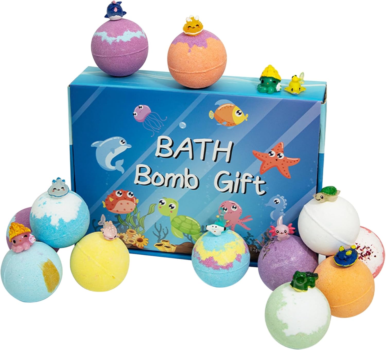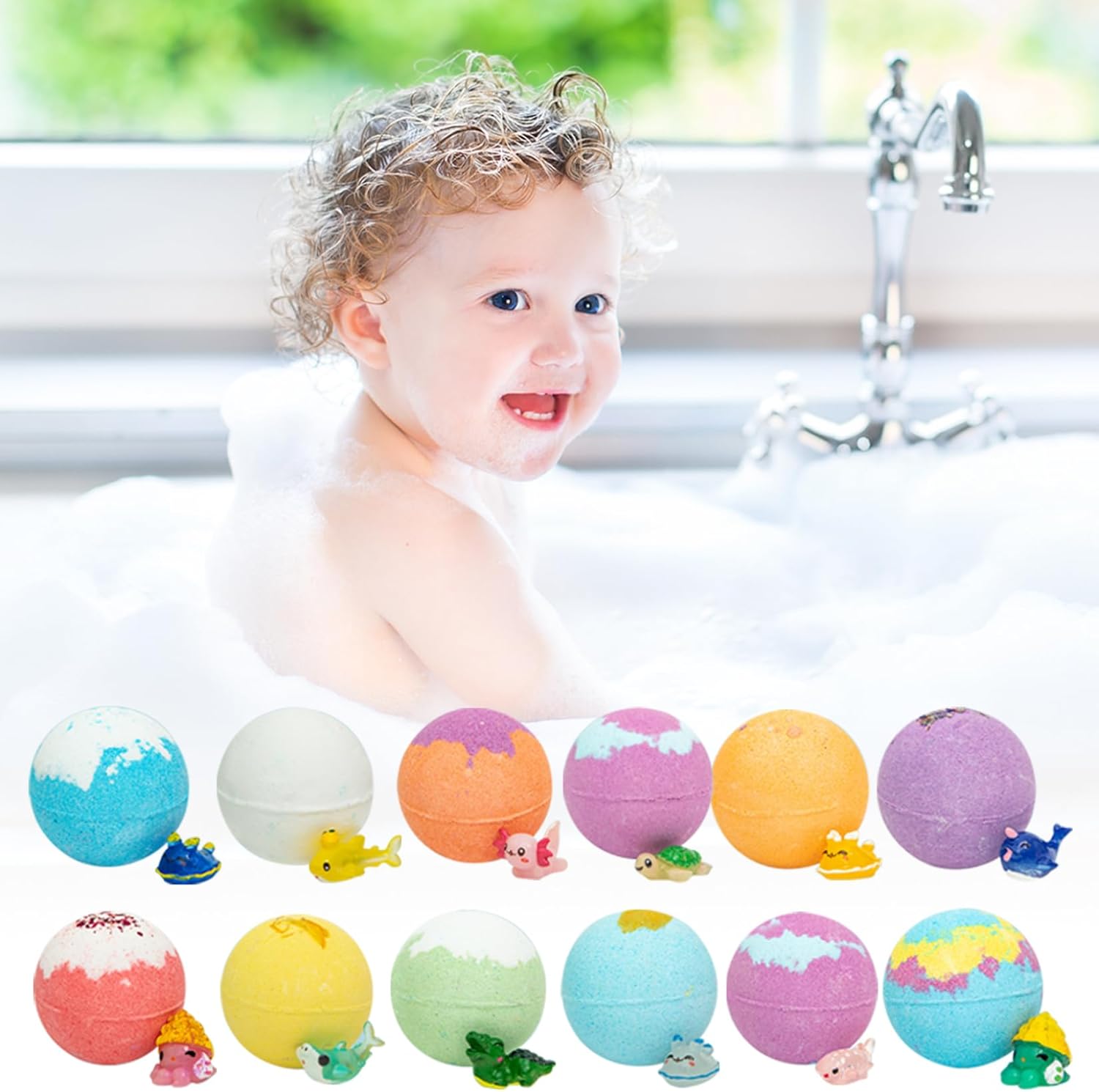 Ingredienti adatti ai bambini: realizzate con estrazione vegetale e ingredienti naturali commestibili, queste bombe da bagno sono sicure per la pelle sensibile dei bambini..I genitori possono fidarsi che i loro piccoli godano un'esperienza di bagno delicata e delicata senza sostanze chimiche aggressive. Set perfetto: questo set di bombe da bagno da 12 pezzi è ideale per varie occasioni, tra cui compleanni, Natale, Halloween e festa della mamma..Confezionato magnificamente, è un prodotto premuroso e divertente che i bambini adoreranno, garantendo un momento del bagno memorabile e divertente. Emozionante sorpresa all'interno: ciascuna delle 12 bombe da bagno contiene un simpatico animaletto nascosto all'interno, rendendo il momento del bagno un'avventura emozionante per i bambini..Questa deliziosa sorpresa incoraggia i bambini a godersi il bagno mentre attendono con impazienza il divertente giocattolo che li attende. Varietà di profumi: con 12 profumi diversi, la nostra bomba da bagno crea un'esperienza sensoriale unica per ogni bagno..Dal fruttato al floreale, ogni bomba da bagno fornisce un delizioso aroma che trasforma il momento del bagno in un rituale rilassante e divertente per i bambini. Divertimento frizzante e colorato: guarda come ogni bomba da bagno frizza e dissolve, rilasciando colori vibranti e creando un'esperienza di bagno frizzante..Le bolle colorate non solo rendono il momento del bagnetto più piacevole, ma stimolano anche l'immaginazione e la creatività dei bambini.