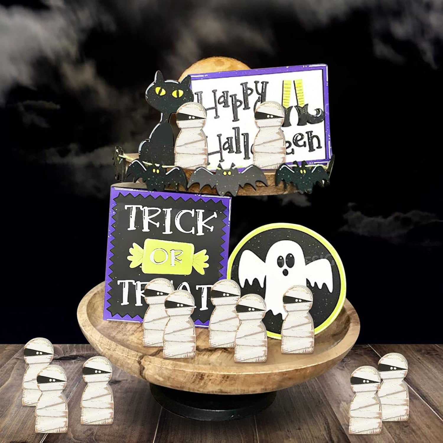 Queste simpatiche mummie in legno per la tua collezione di Halloween, porteranno un sacco di divertimento al tuo Halloween, realizzate con materiali in legno di alta qualità, queste statuette in legno renderanno il tuo studio e la tua scrivania davvero accattivante Il design unico aggiunge mistero e mette in mostra le tue preferenze e personalità, un ottimo regalo per familiari e amici che stanno assemblando un nuovo vassoio a più livelli per completare le decorazioni del vassoio di Halloween della tua casa. Questo sarà sicuramente una decorazione accattivante, figure di piccole mamme per rendere le decorazioni del vassoio più divertenti! Ti stai ancora chiedendo quali sono le piccole e stravaganti decorazioni di Halloween sulla scrivania, che sono più accattivanti? Questo ornamento di ripieno per la ciotola della mamma è la soluzione perfetta! Un must per la decorazione della casa di Halloween! Decora la tua casa con decorazioni da tavola di Halloween durante Halloween. Puoi posizionarli su un tavolo o uno scaffale prominenti per un'atmosfera spettrale alla tua casa, piccoli ornamenti più attesi di Halloween, figure di piccole mummie e dolcetti di Halloween che faranno battere il tuo cuore! ✨ Questa piccola ciotola ornamentale per mummia è adatta per decorazioni per Halloween, Natale, Ringraziamento, festival dei fantasmi e altri festival, e può anche essere utilizzata come regalo unico di Halloween per i tuoi vicini, amici, familiari, questa meravigliosa e interessante mummia di omino