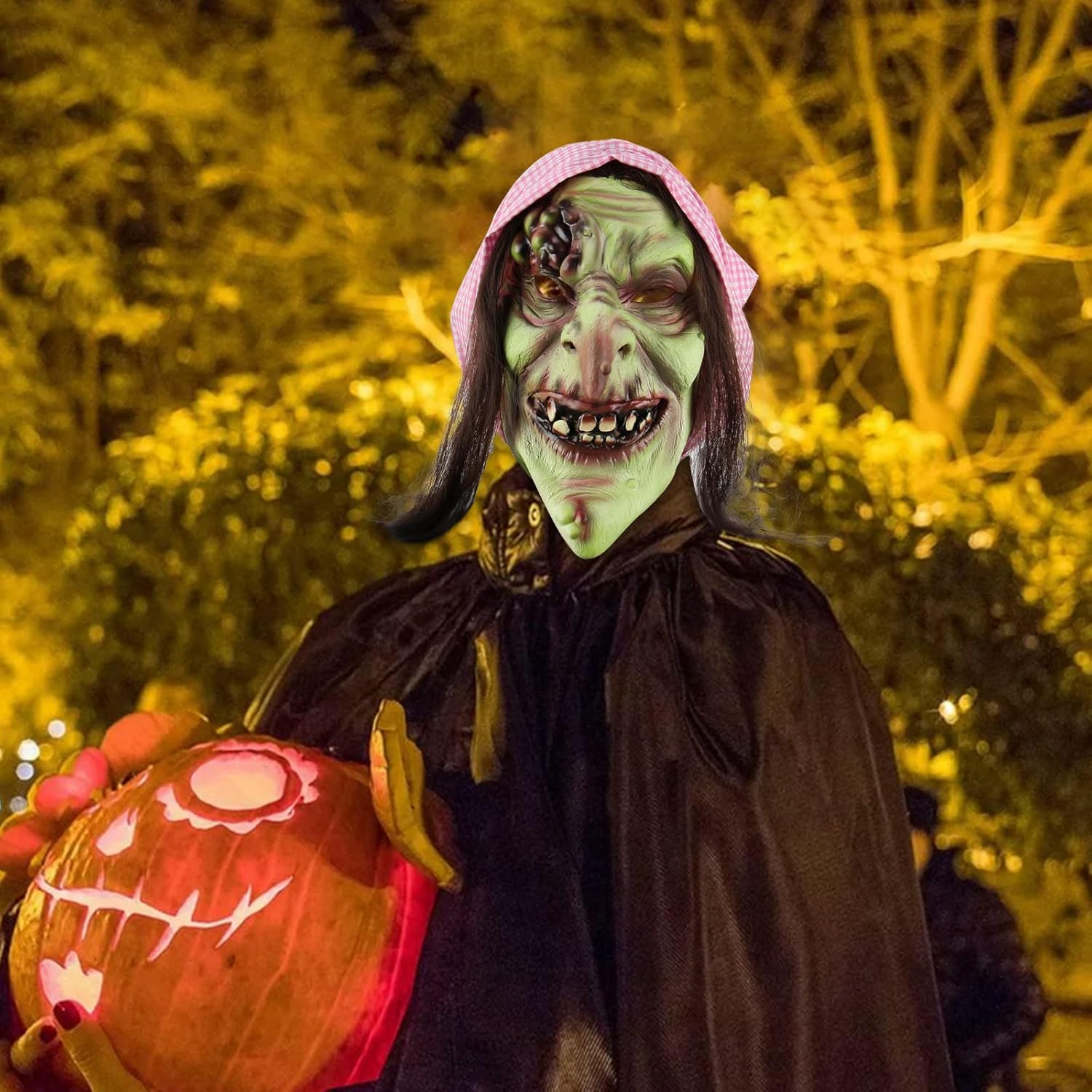 Materiale: Realizzato in lattice naturale, comodo e traspirante da indossare. Nota: poiché si tratta di un prodotto in lattice, è inevitabile che ci sia qualche odore, che è del tutto normale. Basta mettere il prodotto in un luogo ventilato per alcuni giorni e attendere che l'odore si dissolti. Non ha alcun effetto sul corpo umano. Si prega di sentire di usarlo. Design intricato. Squisita lavorazione dei dettagli, texture delicate e colori fantastici, fedele alla pellicola. Occasione: Perfetto per feste in maschera, regali, feste in costume, carnevale, Natale, Pasqua, Capodanno, Halloween, ecc. Renderti il centro della festa. Il cappuccio del cappuccio e la parrucca sono insieme. Si adatta alla maggior parte delle persone. Visibilità e traspirabilità. La vista e il respiro non sono bloccati. Puoi vedere attraverso gli occhi del costume. Questo Will To You. Il lattice di gomma è elastico ed elastico con un sacco di spazio e traspirabilità.