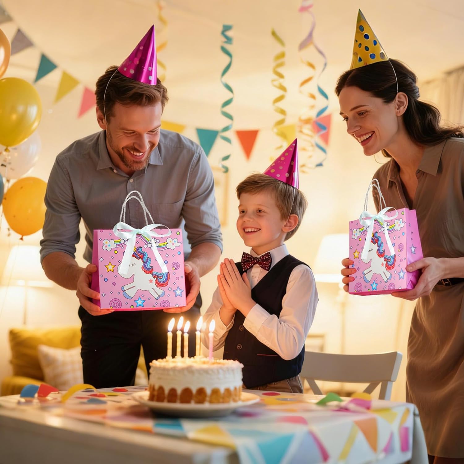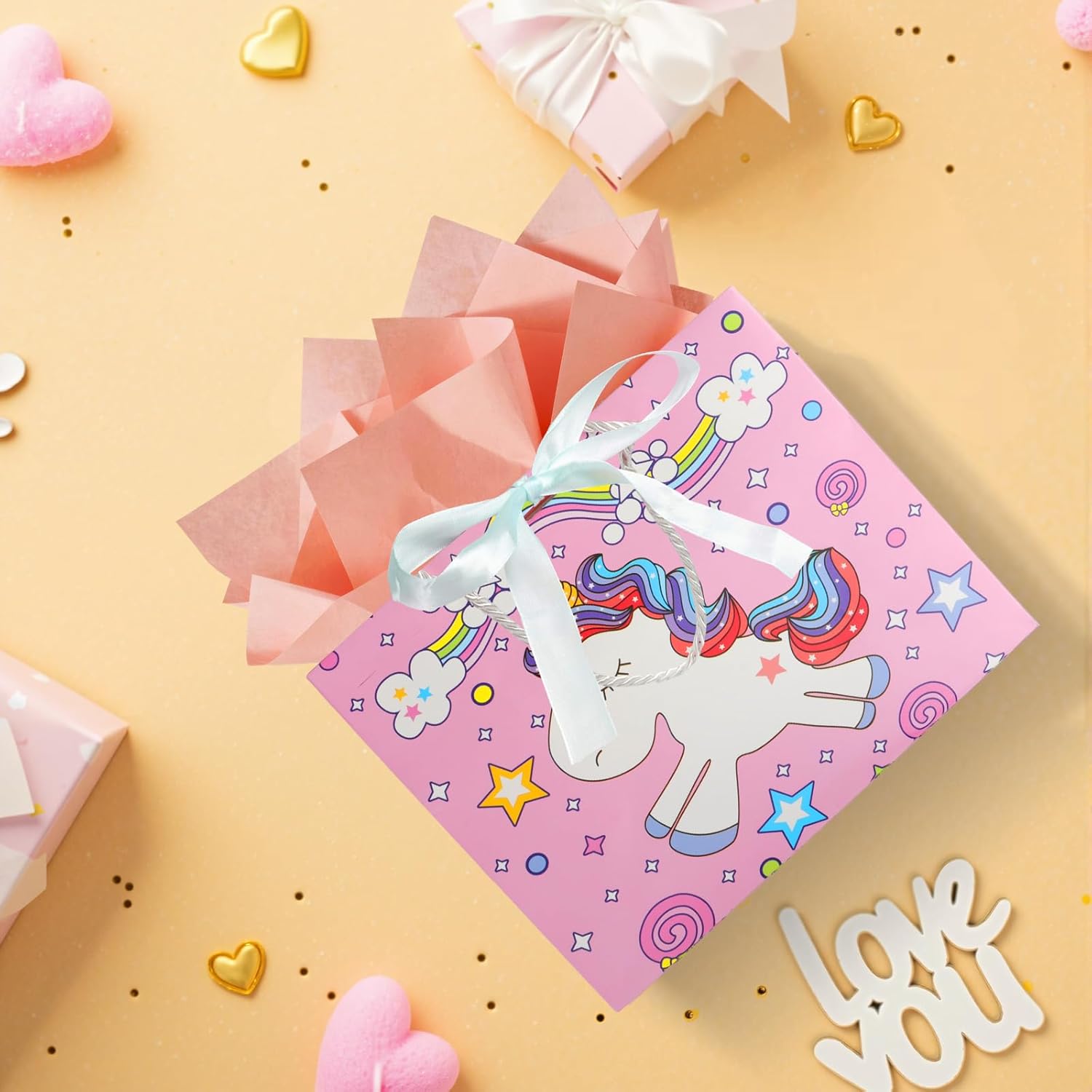 La confezione include: riceverai 2 squisiti sacchetti regalo, la dimensione del sacchetto regalo è 25 cm (L) x 20 (L) x 12 (A). Sono presenti 4 fogli di carta velina per decorare i vostri regali e due eleganti nastri per decorare i vostri sacchetti regalo. Inoltre, 2 biglietti su cui puoi scrivere gli auguri alla tua amata famiglia o ai tuoi amici. 【Qualità perfetta】 I sacchetti regalo con manico realizzati con materiali resistenti allo sbiadimento proteggono efficacemente il contenuto dalla polvere. Lo strato esterno liscio e resistente all'acqua è durevole, resistente agli strappi e piacevole al tatto. I materiali di alta qualità sono durevoli e quindi riutilizzabili. La scelta ideale per fare regali, garantendo che i regali vengano consegnati al destinatario nelle migliori condizioni possibili. 【Scelta perfetta per fare regali】 I nostri sacchetti regalo in carta di compleanno sono perfetti per confezionare regali di dimensioni standard o regali di piccole e medie dimensioni. Squisitamente realizzato e con un tocco di fascino infantile, è un regalo ideale per adulti e bambini. Perfetto per confezionare regali per compleanni, vacanze, matrimoni, festa della mamma, lauree, Natale e altro ancora. 【Raffinato e pratico】La custodia in carta cartone animato combina estetica e funzionalità con un motivo cartone animato stampato su entrambi i lati, reso con elevata chiarezza e colori ricchi e vivaci che ne aumentano il fascino. Inoltre, lo spazio interno della borsa regalo è sufficientemente spazioso per soddisfare le tue esigenze di regali, in modo semplice e pratico. 【Riutilizzabile】Il fondo di ogni sacchetto regalo di carta è rinforzato per migliorarne la durata. La struttura super stabile dei sacchetti di carta ha un fondo di riempimento extra che è durevole e affidabile, facile da riempire, conservare e trasportare per un uso a lungo termine, la scelta ideale per fare regali.