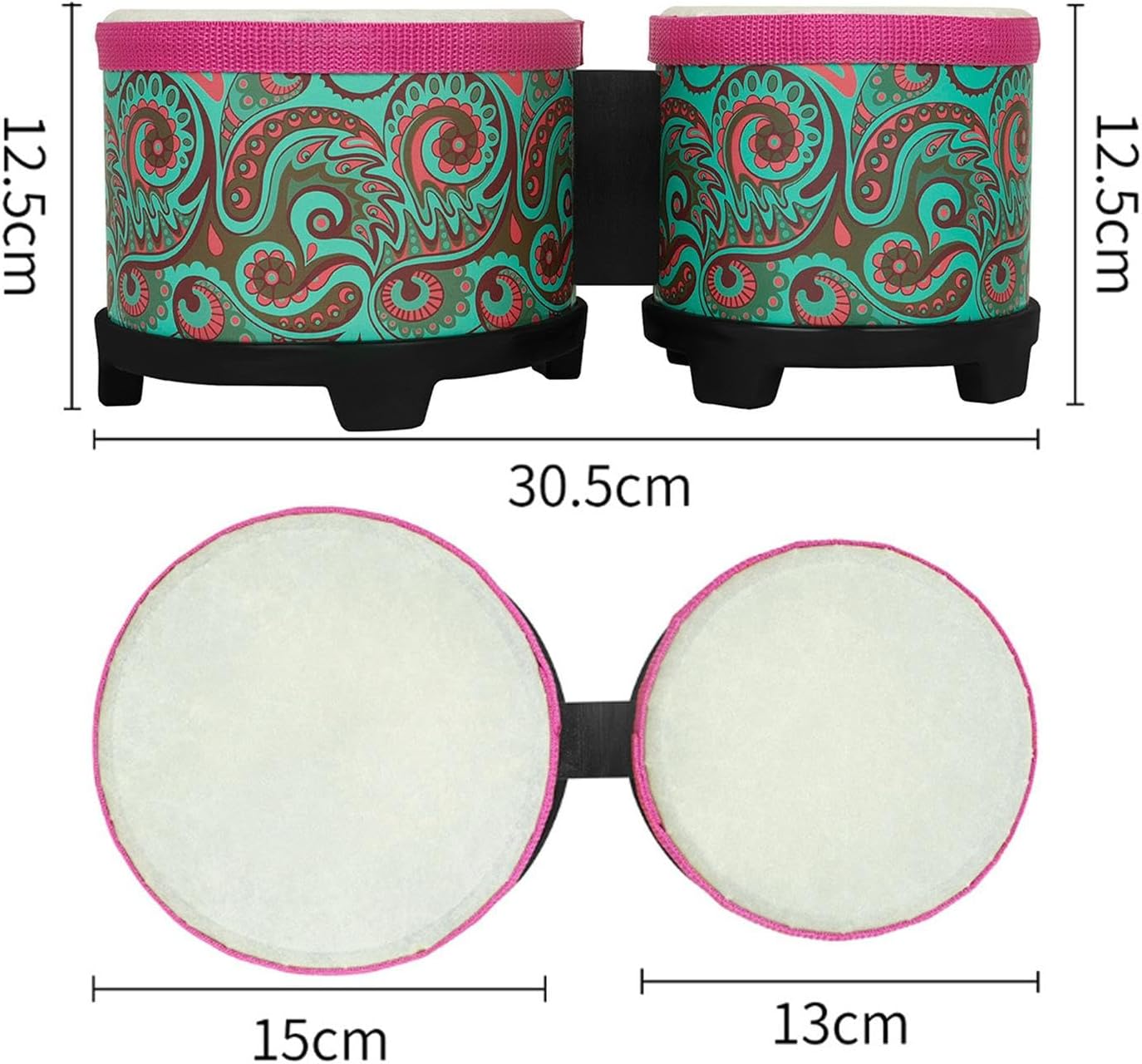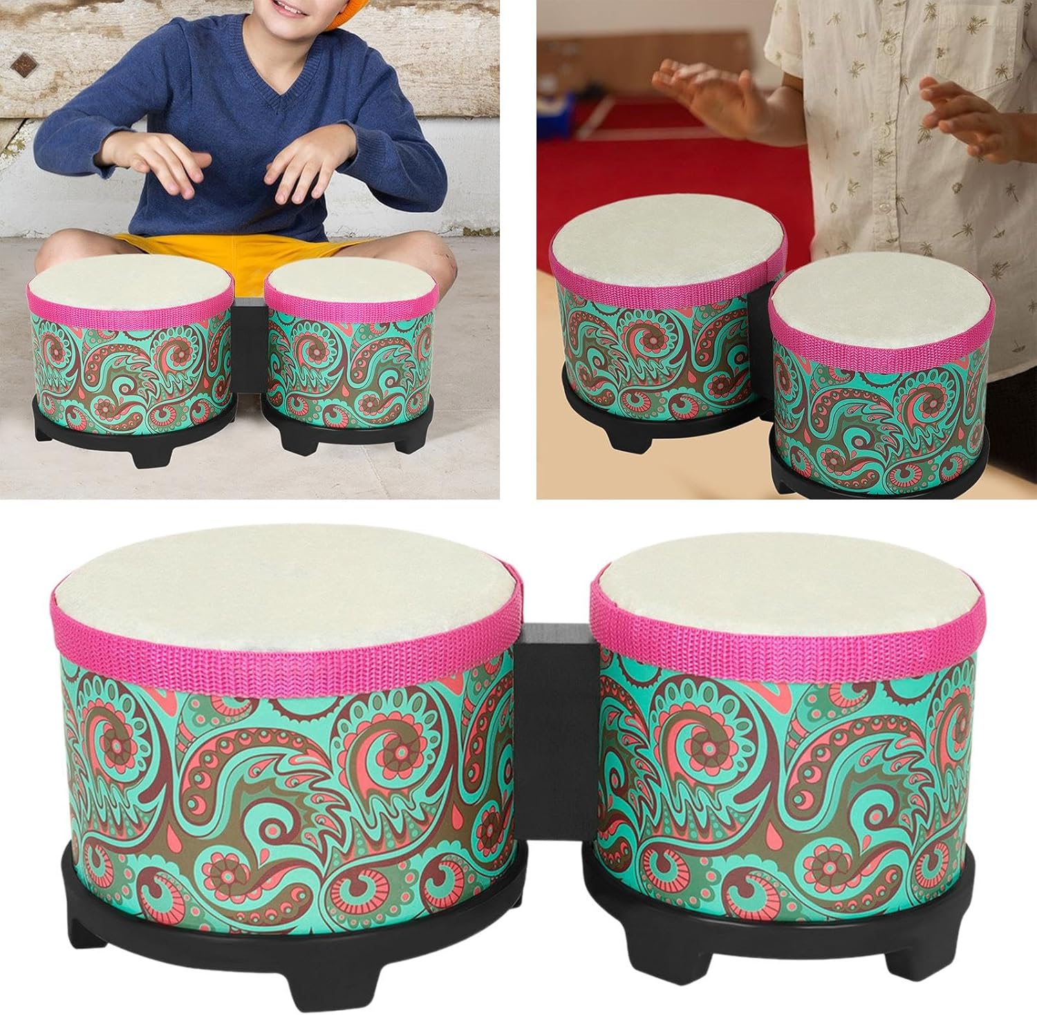 [regalo] : il set di batteria bongo incoraggia i bambini a usare la loro immaginazione e creatività. È il regalo di prima scelta per i bambini in diversi scenari come compleanni, vacanze o eventi speciali. Uso: il tamburo congas ha due testine, 12,7 cm e 15,2 cm, che sono convenienti per i musicisti per suonare toni diversi e fornire ai tuoi bambini diversi modi per creare musica. [design] : l'aspetto del set di tamburi bongo da 15,7 cm e 15,2 cm aggiunge interessanti elementi visivi e i colori sono luminosi, che possono attirare l'interesse dei bambini. Stimola l'interesse dei bambini per l'apprendimento Funzione: gli strumenti a percussione possono aiutare i bambini a sviluppare l'alfabetizzazione musicale, le capacità di ascolto, ecc. Sono adatti anche per diverse occasioni come giochi per genitori e attività familiari. Materiale: il tamburo bongo è realizzato in pp e pelle artificiale e gomma, resistente e non facilmente danneggiato, resistente all'usura e può essere utilizzato per un lungo periodo di tempo.