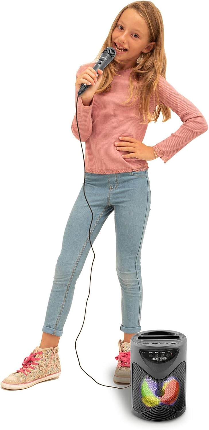 WIRELESS: il microfono offre un'esperienza wireless, consentendo agli utenti di muoversi liberamente durante le esibizioni senza essere ingombrati dai cavi. TWS DINAMICO: l'amplificatore è dotato della funzionalità TWS che consente di collegare più amplificatori contemporaneamente e dinamicamente. VANO PORTA SCARTETELEFONO: Il vano porta smartphone integrato ti consente di posizionare in modo sicuro il tuo dispositivo durante le esibizioni, fornendo un accesso facile e veloce alla tua libreria musicale. EFFETTI LUCE: Con i suoi effetti di luce dinamici, aggiunge un tocco di spettacolo e divertimento al karaoke, trasformando la stanza in una festa di luci. EFFETTO ECHO: Il microfono del karaoke offre la possibilità di aggiungere un effetto eco alla voce, per un'esperienza di performance diversa.