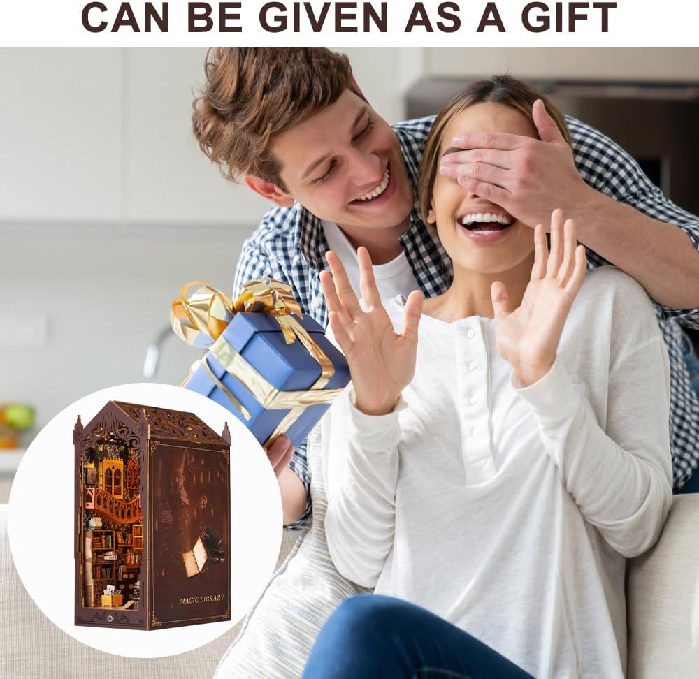 🔮【Design unico】Il DIY book nook Kit combina un diorama 3D, un angolo dei libri e una decorazione, tutto in uno. Il cottage è come una miniatura di una casa vera. Quasi tutte le scene richiedono la tua creazione. È un elegante elemento d'arredo per una libreria o una scrivania. Il kit fai da te per l'angolo dei libri è dotato di luci a LED integrate per sorprenderti nel buio della notte. 📘【Kit fai da te per l'angolo dei libri】L'angolo dei libri in legno con puzzle 3D è composto da singole parti e richiede il montaggio; non è un prodotto finito. Anche se sei un principiante, il manuale con codice colore può guidarti passo dopo passo attraverso il kit di costruzione in miniatura. Questo 3D book nook Kit è un ottimo modo per comunicare con adolescenti e adulti e può anche ispirarti a progettare e costruire come un vero ingegnere. ✅【Materiali di alta qualità】L'angolo dei libri in miniatura fai da te è realizzato in legno di alta qualità, resistente e durevole. I pezzi sono tagliati al laser con dettagli squisiti. I blocchi di legno possono essere facilmente espulsi dalla cornice per facilitarne la combinazione e il collegamento precisi. Il book nook Kit include istruzioni passo passo e immagini che descrivono i passaggi. È semplice e divertente da seguire. ✨【Regalo creativo】Per chi ama l'artigianato e le miniature, il book nook Kit è un regalo perfetto e un oggetto da collezione. Puoi assemblarlo tu stesso per rendere il regalo più significativo. È un perfetto inserto per libreria in biblioteca, libreria, studio, ma può anche essere posizionato su un tavolo, accanto al letto o ovunque tu voglia. Nessuno rifiuterà un regalo così creativo! 🎉【Ampiamente utilizzato】Idea regalo perfetta per Natale, il Giorno del Ringraziamento, San Valentino, compleanni e altre occasioni speciali per esprimere il tuo amore ai tuoi bambini, familiari, amici e persone che sono appassionati di artigianato e amano i modelli 3D in legno. Acquistando questo book nook Kit come regalo per i tuoi amici o familiari, penseranno che si tratta di un regalo davvero premuroso e unico.