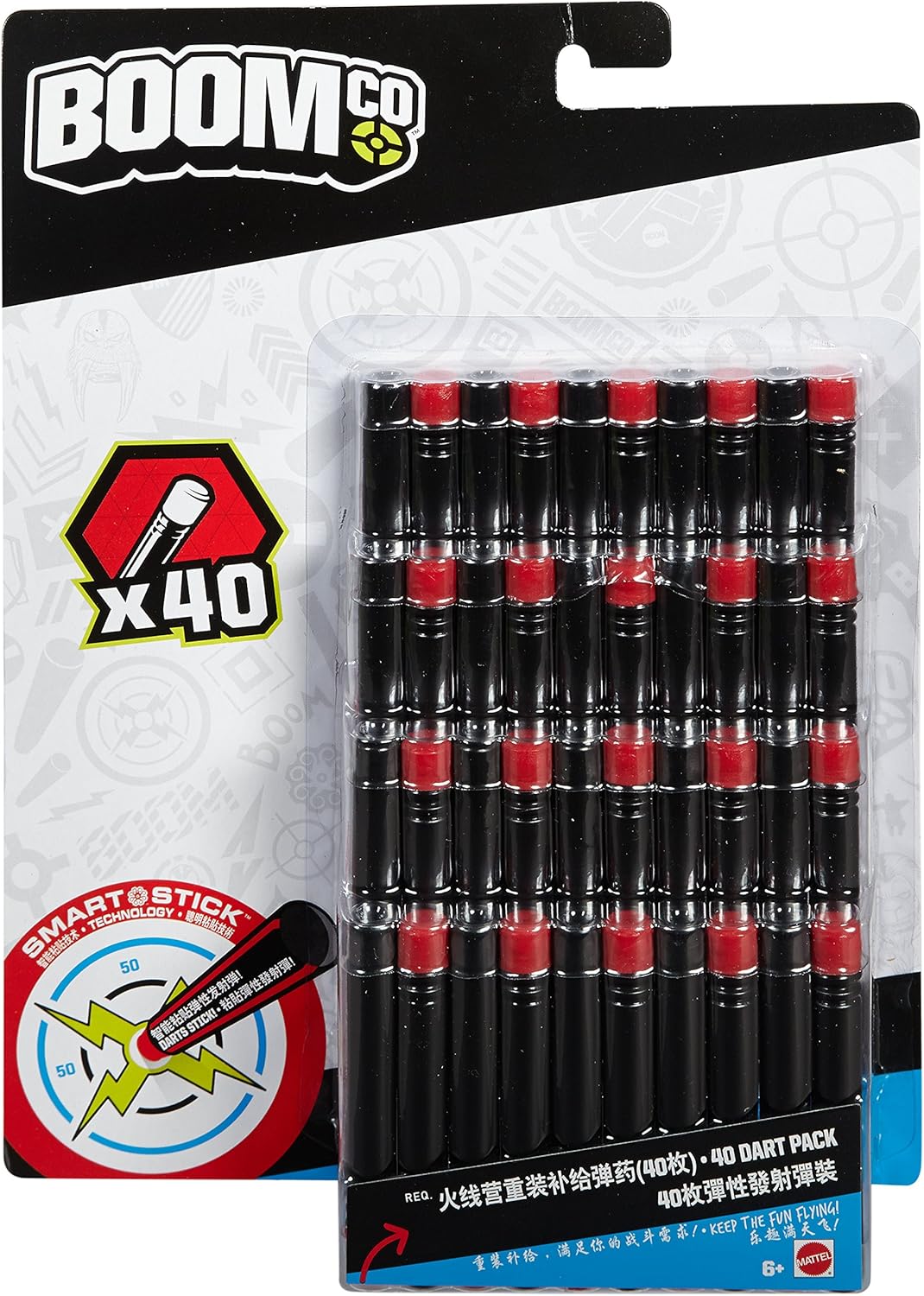 40 of these darts is good but I wish it came with a smart stick target or at least 10 more darts. Still a good buy. If you need darts for boomco get these.