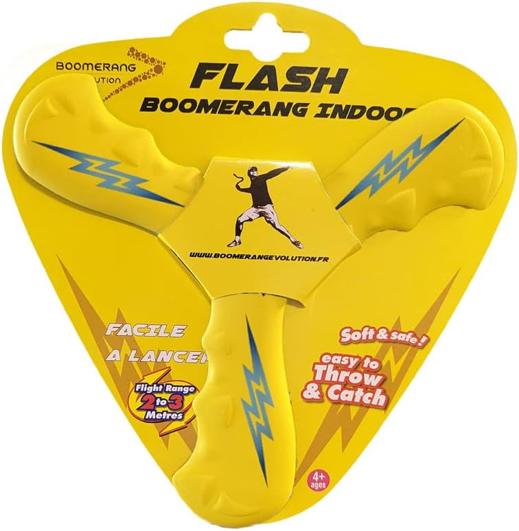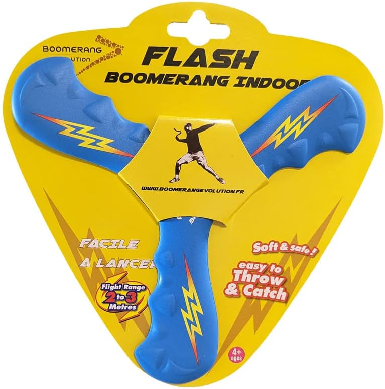 Creato da uno dei membri del team francese Boomerang (12° Monidal agli ultimi Mondiali) progettato in schiuma completamente innocua e antistrappo, è il boomerang perfetto per imparare in modo divertente. Boomerang progettato per DESTRA. Un boomerang sicuro per avere più apprensione quando si recupera e per imparare più velocemente aumentando la velocità! Utilizzare all'interno o all'esterno (senza vento). Apertura alare: 22 cm Condizione del vento: Interno/Esterno Materiale: Schiuma Livello: Tutti 4+