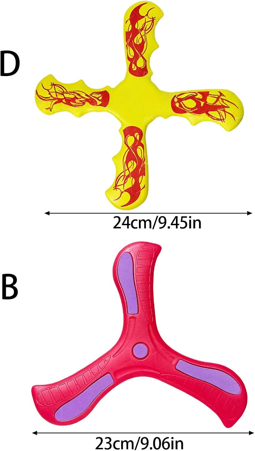 Portati al parco, in spiaggia o in giardino per divertenti esperienze di legame all'aria aperta Distinguiti dalla massa con il colore brillante e il design accattivante dei nostri boomerang Mantiene la sua forma anche dopo lanci intensi ed esposizione all'acqua Prova l'emozione di una traiettoria di volo perfetta I nostri boomerang sono sicuri per bambini e adulti e non richiedono un lancio forte