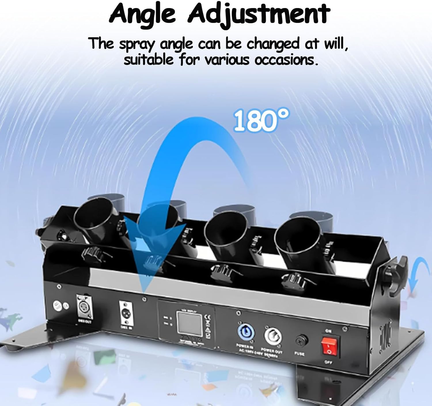 ◉ 【Macchina per coriandoli】 Questa macchina per coriandoli compatta ma potente può lanciare istantaneamente grandi quantità di coriandoli nel cielo, creando uno spettacolo affascinante. ◉ 【Angolo regolabile】 Il lancia coriandoli può regolare e fissare manualmente l'angolo della canna di spruzzo e può spruzzare entro un secondo dall'emissione del comando di lancio per evitare di perdere il miglior tempo di lancio. ◉【Semplice e multifunzionale】Due modalità di controllo. Attiva il pulsante spray per il controllo remoto o collega il cavo del segnale DMX alla console e utilizza la console per il controllo DMX512. ◉ 【Ampia area di copertura】 La nostra macchina per coriandoli può lanciare coriandoli su una vasta area, coprendo un'ampia area e creando un'atmosfera migliore. ◉ 【Potenziatore dell'atmosfera dell'evento】 Il lanciatore di coriandoli professionale è perfetto per concerti, matrimoni, bar, feste e altre occasioni e può essere facilmente installato e gestito da una persona.
