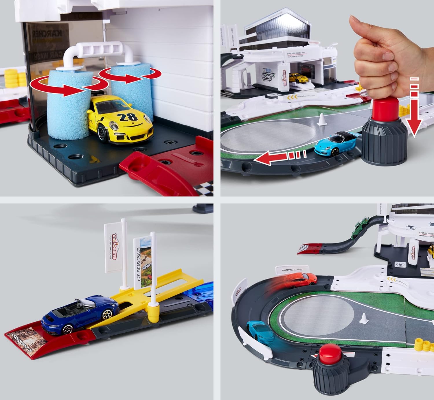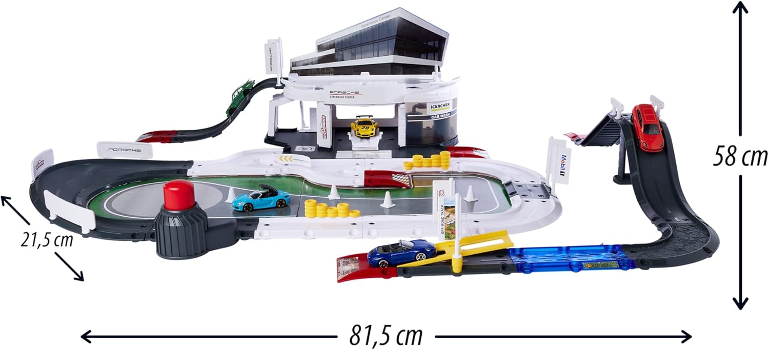 Centro test e circuito Porsche con più di 60 pezzi, consigliato per bambini a partire dai 5 anni Dispone di una stazione di ricarica per veicoli ibridi, una piattaforma di sollevamento per riparazioni rapide e un sistema di autolavaggio Kärcher Circuit con lanciatore, una curva di scarico e un circuito di guida, così puoi mettere alla prova tutte le tue abilità Auto realizzate in metallo robusto e di alta qualità, con un elaborato processo di stampa che garantisce colori intensi e lucentezza nella finitura della vernice esterna Serie Porsche Edition: diversi modelli e accessori di auto Porsche di alta qualità e realismo