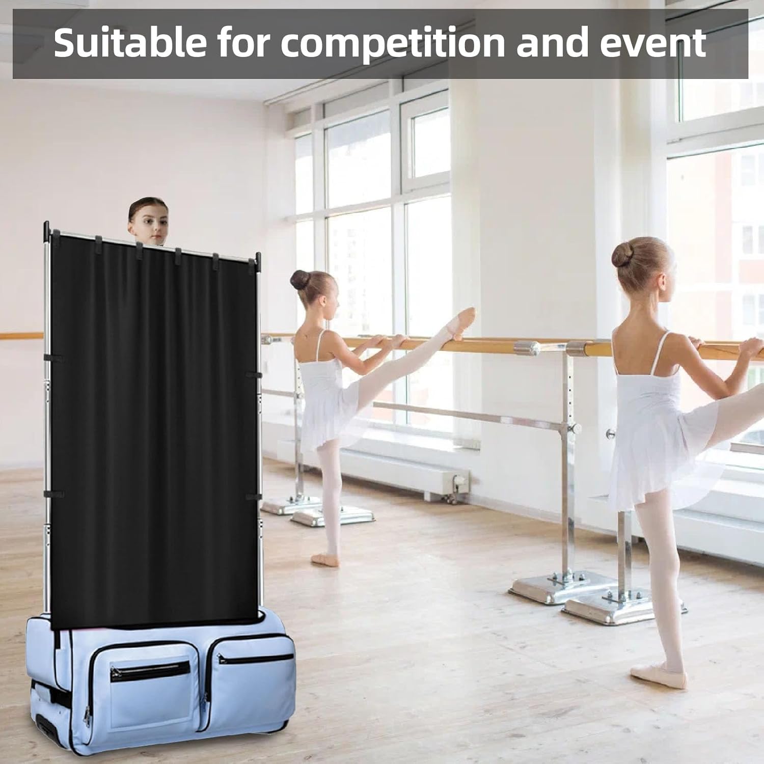[Dì addio al caos degli spogliatoi] Questa tenda per la privacy ti assicura di poter cambiare con competizione e eventi, evitando spazi condivisi affollati e scomodi [Tessuto oxford resistente] realizzato in tessuto 420d oxford, questa tenda offre privacy e affidabilità per un cambiamento sicuro in ambienti di backstage. [Comodo e pratico] ospita la maggior parte dei rack per sacchetti da ballo con le sue dimensioni di 150x80 cm, piegando facilmente in un sacco di stoccaggio per la portabilità quando non in uso [Easy Installation] Con un semplice di adesivo per ganci e loop, questa tenda si attacca al rack della tua borsa da ballo in pochi secondi senza la necessità di strumenti [Compagno di concorrenza ideale] premuroso per i ballerini, fornendo privacy e comfort per compleanni, vacanze o competizioni in ambienti con strutture limitate