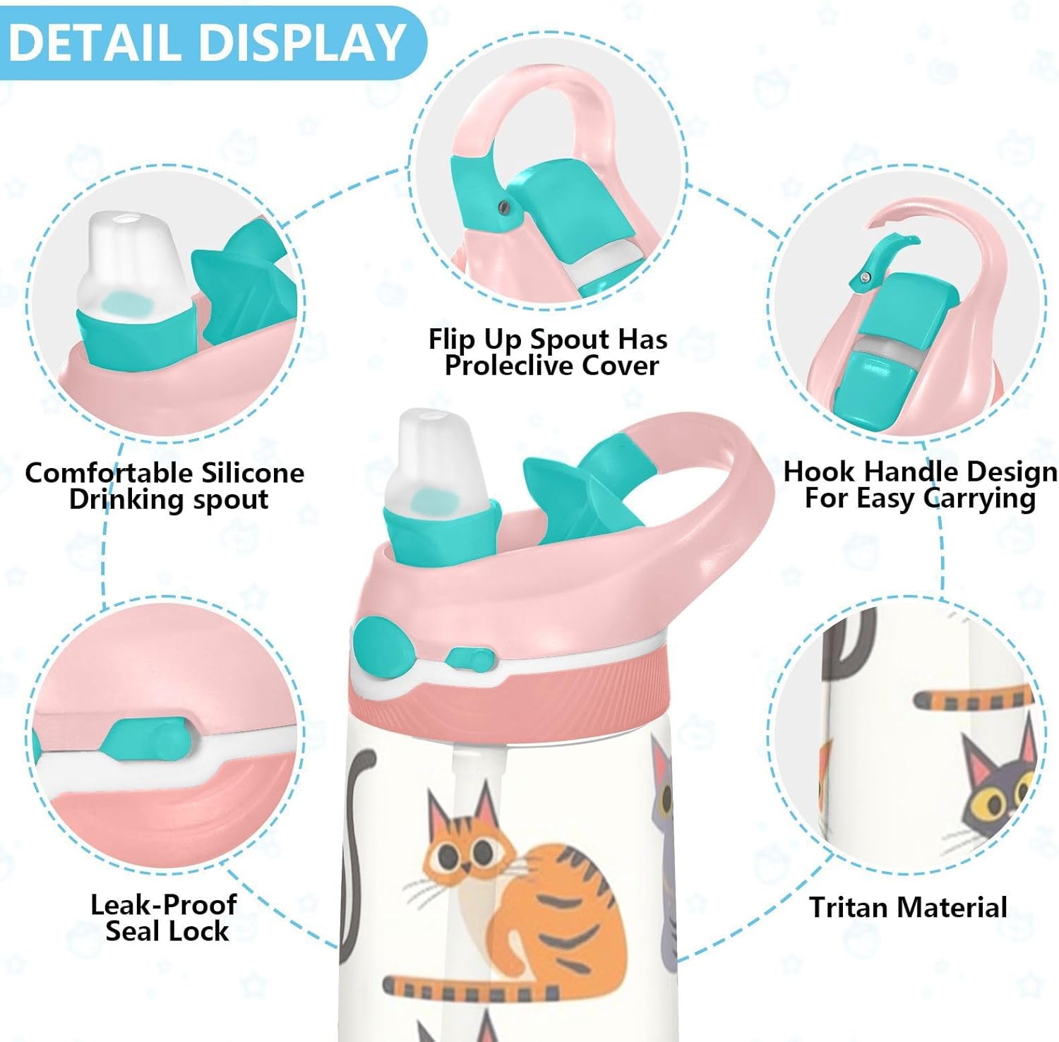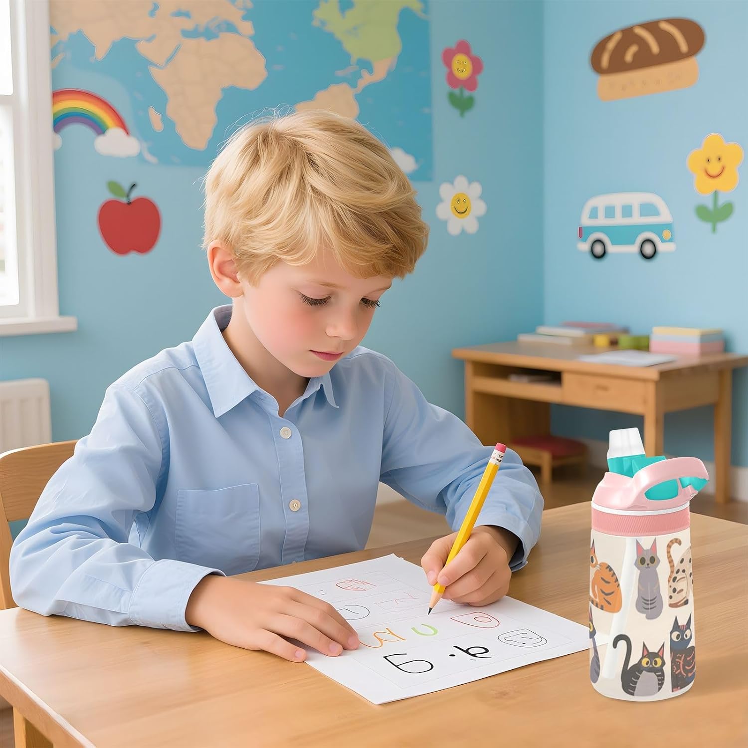 Materiali: questa borraccia per bambini da 480 ml (16 cm di lunghezza, 7,5 cm di larghezza) combina tritan e silicone alimentare. per la pratica sportiva o i giorni scolastici, è sicuro per i bambini da usare tutti i giorni. Non adatto a bambini di età inferiore ai 3 anni! Comoda da trasportare: con un ampio manico per mani piccole e un gancio sul coperchio, la borraccia sportiva può essere appesa agli zaini. I bambini non faranno fatica a trasportarla durante le gite sul campo o le attività post-scuola. Funzionamento con una sola mano: il becco d'anatra si adatta alla bocca dei bambini, con una copertura antipolvere. L'interruttore a pulsante delle bottiglie d'acqua sportive è semplice da usare con una sola mano, in modo che i bambini possano bere mentre tengono una palla o un notebook. Blocco per evitare fuoriuscite: il blocco del pulsante della bottiglia d'acqua per bambini impedisce al becco d'anatra di fuoriuscire per errore. Niente più fuoriuscite negli zaini, mantenendo il pranzo e i libri asciutti. Pulizia semplice: le parti completamente rimovibili evitano l'accumulo di sporco. Pulire con detergente neutro e acqua calda: facile per i genitori mantenere le bottiglie d'acqua sportive pulite per l'uso quotidiano.