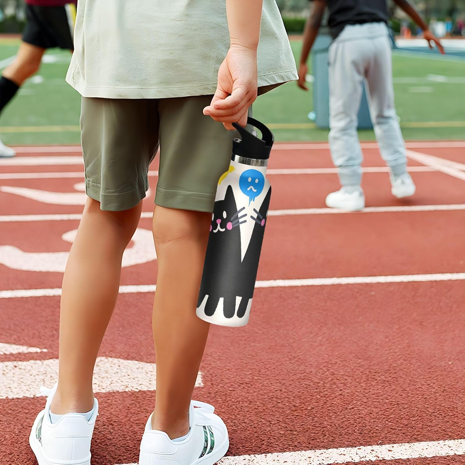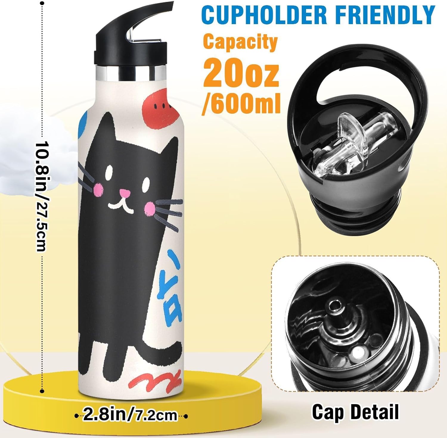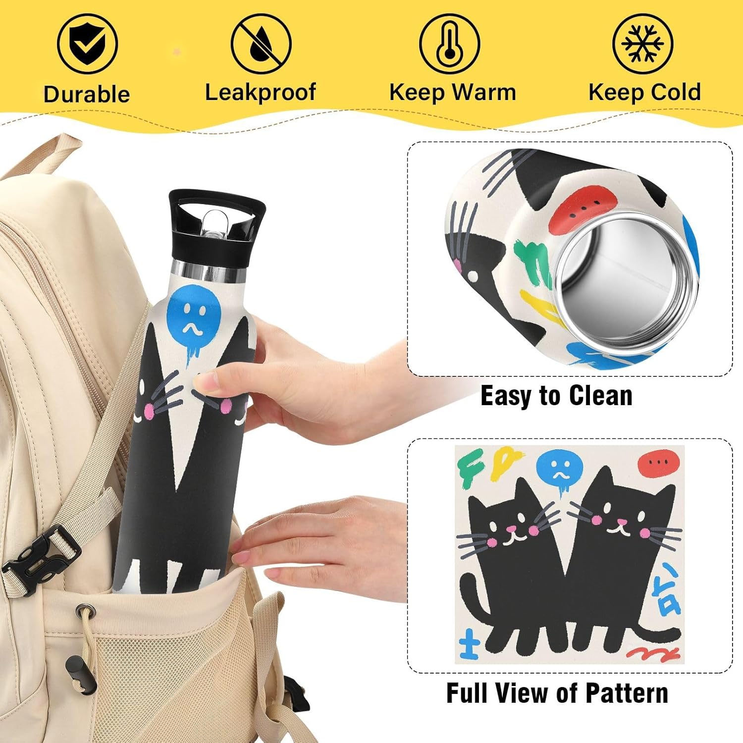 Resistenza isolata sottovuoto: realizzata con acciaio inossidabile a doppio strato e tecnologia sigillata sottovuoto, questa borraccia riutilizzabile mantiene le bevande ghiacciate per 24 ore o calde per 12 ore, perfetta per maratone, escursioni o giornate impegnative in ufficio. Dite addio all'acqua tiepida durante gli allenamenti! Coperchio versatile 2 in 1: dotato di una cannuccia per sorseggiare facilmente e di un beccuccio per versare o sbuffare senza sforzo; semplifica l'accesso alle bevande sia che si tratti di un caffè caldo o di una bevanda fredda. Cannuccia sicura: la cannuccia è atossica e resistente al calore, mantiene la sua forma anche con bevande calde. È ideale per avventure all'aria aperta, come il campeggio, dove hai bisogno di bere in modo affidabile e sicuro. Caratteristiche portatile: il manico allargato consente di raccogliere questa borraccia sportiva con solo due dita. È un gioco da ragazzi da portare durante le corse mattutine o le gite in bicicletta, in modo da poter rimanere idratati in movimento. Dimensione perfetta per viaggiare: questa borraccia termica sportiva si adatta alla maggior parte dei portabicchieri e alla tasca laterale di uno zaino. Comodo da portare in giro con un manico ergonomico a bordo largo. È ideale da portare a scuola, palestra, campeggio o viaggi su strada.