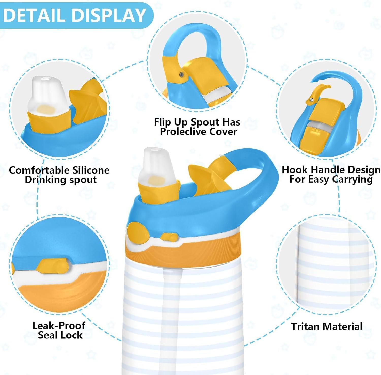 Materiali: questa borraccia sportiva da 480 ml (16 cm di lunghezza, 7,5 cm di larghezza) combina tritan e silicone alimentare. per la pratica sportiva o i giorni scolastici, è sicuro per i bambini da usare tutti i giorni. Non adatto a bambini di età inferiore ai 3 anni! Design portatile: l'ampio manico è facile da impugnare per i bambini e il gancio del coperchio consente di attaccare la borraccia sportiva agli zaini. Niente più bottiglie perse durante le gite sul campo o le attività dopo la scuola. Funzionamento amichevole: il becco d'anatra si adatta bene, con una copertura antipolvere. L'interruttore a pulsante della borraccia per bambini consente l'uso con una sola mano, in modo che i bambini possano idratarsi senza mettere giù i loro giocattoli o attrezzi sportivi. Blocco per evitare fuoriuscite: il blocco del pulsante della bottiglia d'acqua per bambini impedisce al becco d'anatra di fuoriuscire per errore. Niente più fuoriuscite negli zaini, mantenendo il pranzo e i libri asciutti. Pulizia semplice: le parti completamente rimovibili evitano l'accumulo di sporco. Pulire con detergente neutro e acqua calda: facile per i genitori mantenere pulita la borraccia sportiva per l'uso quotidiano.