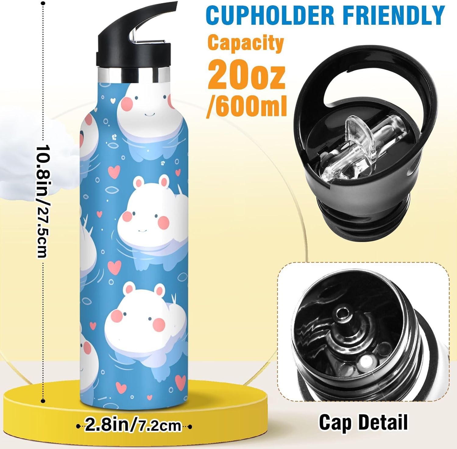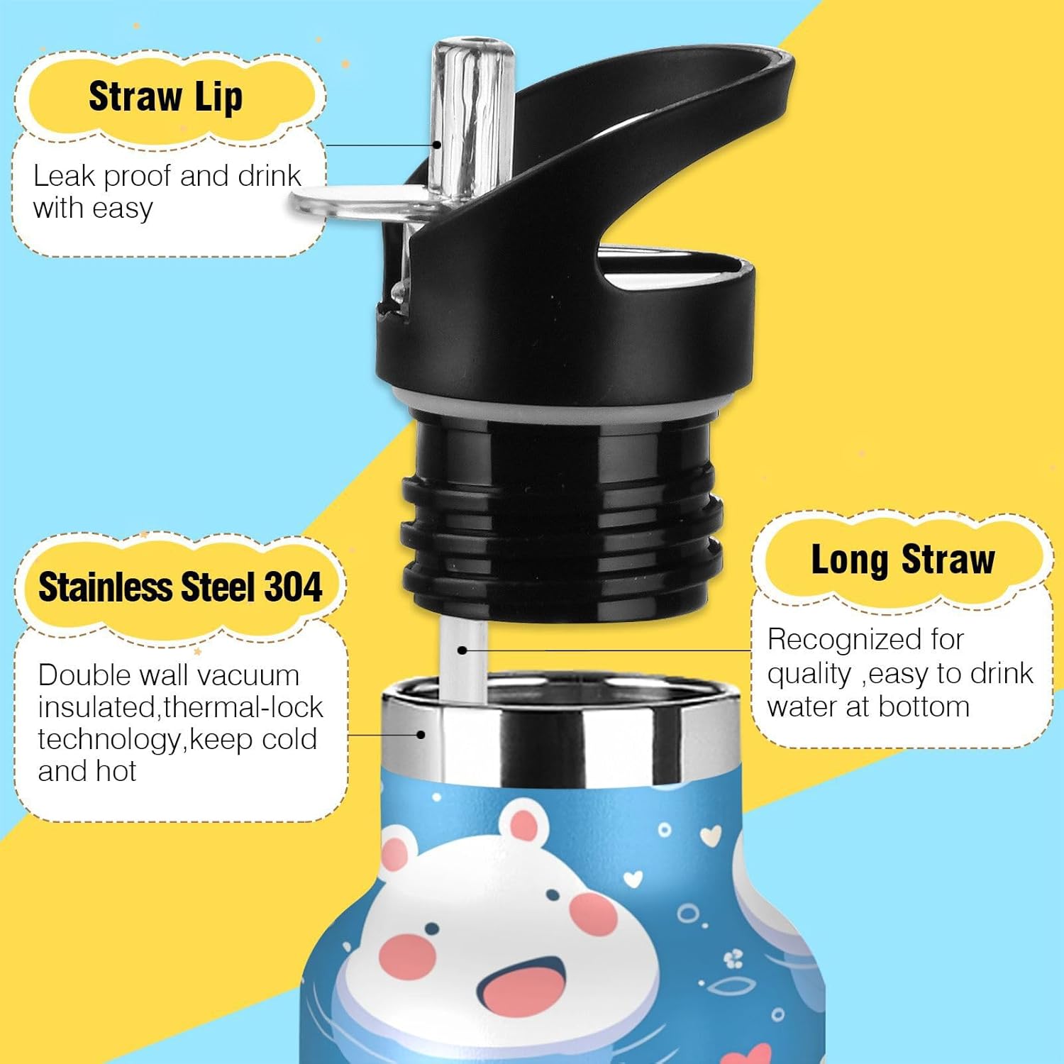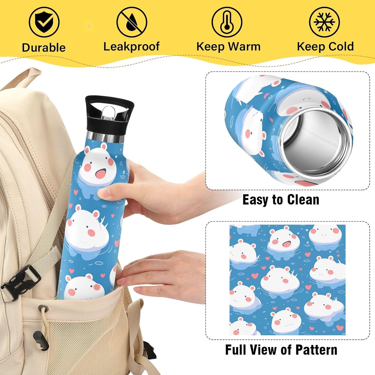 Isolamento premium: questa borraccia presenta una struttura sottovuoto a doppia parete. Lo strato esterno in acciaio inox per uso alimentare e il rivestimento interno con uno strato termoisolante e blocco sottovuoto offrono una grande ritenzione di calore e freddo. Dite addio alle bevande tiepide! Coperchio 2 in 1: i due coperchi possono essere cambiati in qualsiasi momento: la cannuccia per sorseggiare facilmente o un coperchio girevole per una rapida idratazione. A tenuta stagna Avventura Ready: meccanismo Twist-lock e guarnizioni in silicone rinforzato impediscono fuoriuscite anche capovolte negli zaini. Affidati per gite in kayak o metropolitane affollate. Grande capacità: con una grande capacità di 590 ml, questa borraccia termica sportiva è perfetta per rimanere idratati durante lunghi allenamenti o attività all'aperto. Dimensioni perfette per viaggiare: questa borraccia sportiva si adatta alla maggior parte dei portabicchieri e alla tasca laterale di uno zaino. Comodo da portare in giro con un manico ergonomico a bordo largo. È ideale da portare a scuola, palestra, campeggio o viaggi su strada.