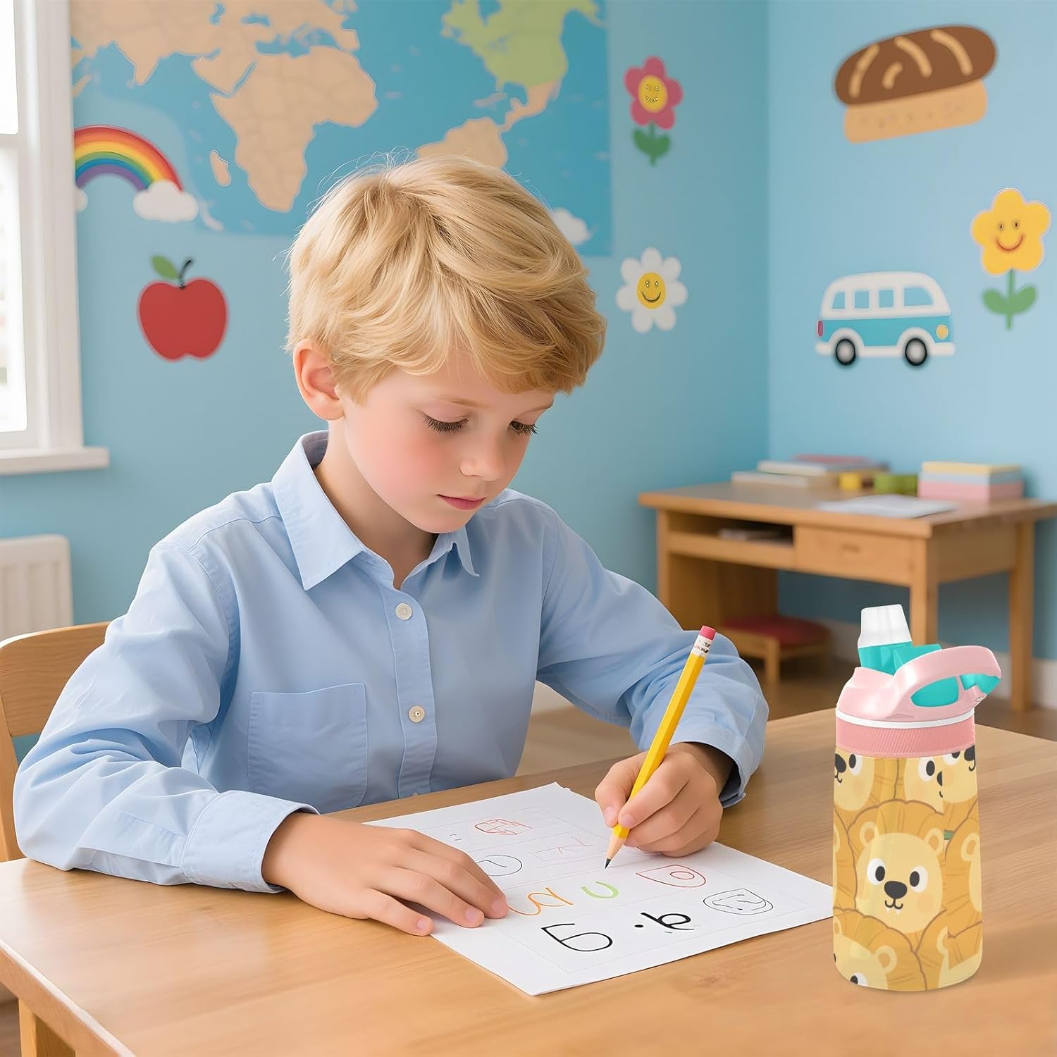 Materiali di qualità: la borraccia (16 x 7,5 cm) utilizza tritan e silicone alimentare. Ideale per pratica sportiva o picnic. Non adatta a bambini di età inferiore ai 3 anni Comoda da trasportare: con un ampio manico per mani piccole e un gancio sul coperchio, la borraccia sportiva può essere appesa agli zaini. I bambini non faranno fatica a trasportarla durante le gite sul campo o le attività post-scuola. Uso senza problemi con una sola mano: il design a becco d'anatra si adatta alle bocche dei bambini, con una copertura antipolvere. L'interruttore a pulsante della borraccia per bambini è facile da usare con 1 mano, anche quando giocano o corrono. Blocco per evitare fuoriuscite: il blocco del pulsante della bottiglia d'acqua per bambini impedisce al becco d'anatra di fuoriuscire per errore. Niente più fuoriuscite negli zaini, mantenendo il pranzo e i libri asciutti. Facile da pulire: tutte le parti della borraccia sono rimovibili per una pulizia accurata senza sporcare. Usa un detergente neutro e acqua calda: semplice per i genitori mantenere la pulizia per l'uso quotidiano.
