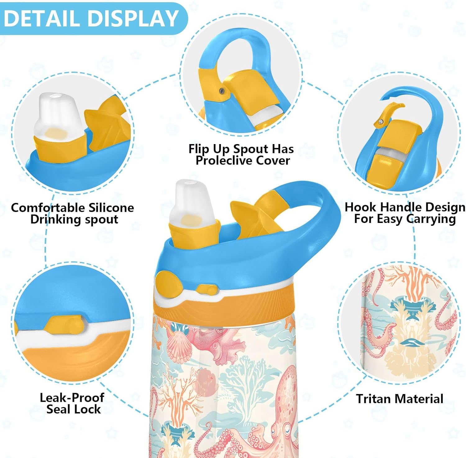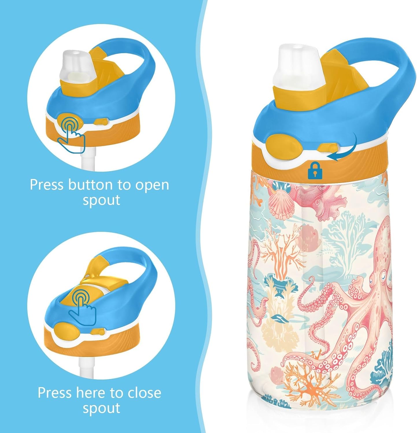 Materiale salutare: realizzato in tritan sicuro, può essere completamente smontato per una facile pulizia. Design funzionale: il boccaglio con cannuccia in silicone si adatta alla forma della bocca dei bambini per sorseggiare comodamente. La copertura antipolvere mantiene il boccaglio pulito e igienico. Portatile: la nostra borraccia è leggera con manico a gancio per un facile utilizzo a scuola, adatta per tutti i tipi di attività all'aperto e al chiuso. Copertura igienica del beccuccio: il coperchio del beccuccio protegge le superfici di contatto e ha una chiusura a scatto per tenerlo chiuso, evitando perdite e fuoriuscite. Quando è il momento di bere, il coperchio di azione consente il funzionamento con una sola mano e il beccuccio si apre facilmente premendo un pulsante. Rimani istrutti tutto il giorno: le nostre borracce trasparenti da 473,6 ml sono perfette per le esigenze quotidiane dei tuoi bambini. Perfetto per escursioni, ciclismo, ciclismo, campeggio, corsa, picnic o qualsiasi altro sport a casa, in palestra e a scuola.