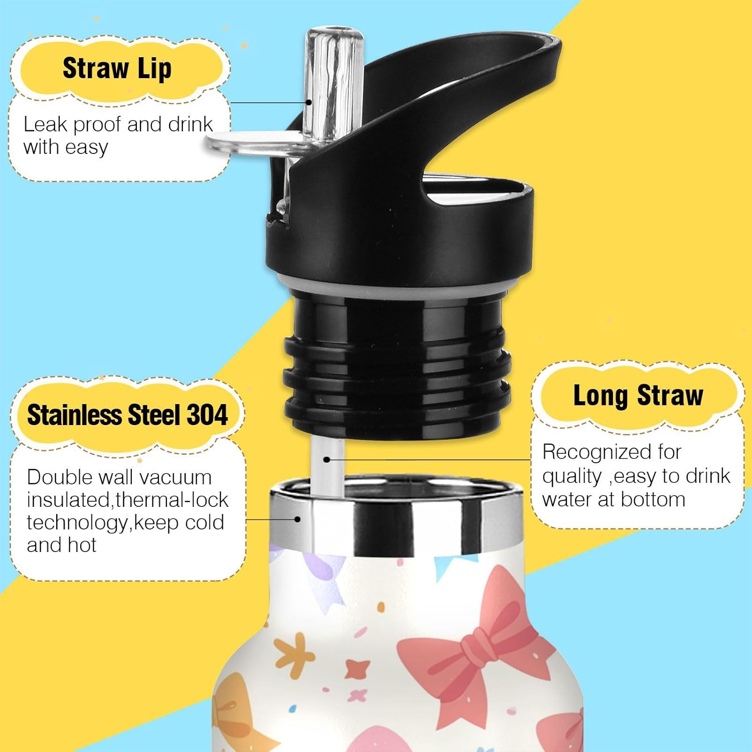 Controllo della temperatura per tutto il giorno: l'isolamento a doppio strato con rivestimento termoriflettente mantiene la temperatura delle bevande durante le pratiche di calcio o gli spostamenti invernali. Non scendere mai a compromessi sulla freschezz Coperchio 2 in 1: con una cannuccia pieghevole, questa borraccia in metallo per bambini garantisce un facile sorseggio. È perfetto per gli allenamenti in palestra, dove puoi bere rapidamente. Design del coperchio: l'esclusiva valvola di rilascio dell'aria consente un flusso regolare durante le corse intense, senza scomode inclinazioni o rischi di soffocamento. Ideale per le pause di idratazione durante le lezioni Grande capacità: con una grande capacità di 590 ml, questa borraccia da palestra è perfetta per rimanere idratati durante lunghi allenamenti o attività all'aperto. Questa borraccia in metallo per bambini è ideale per attività all'aperto, palestra, lavoro o uso domestico. Portalo con te ovunque tu vada e rimani idratato tutto il giorno.