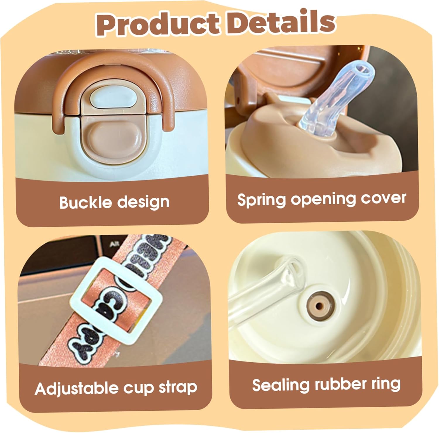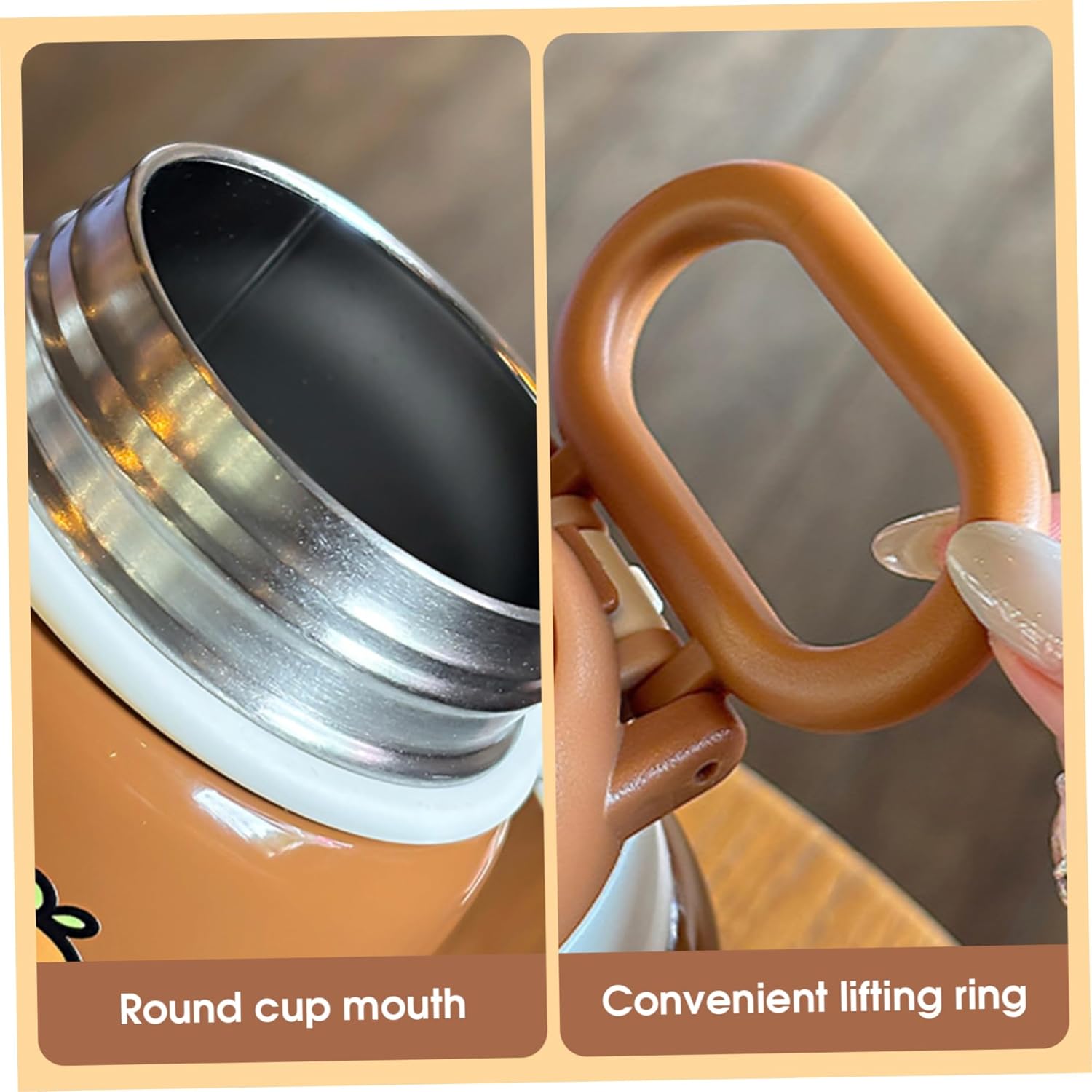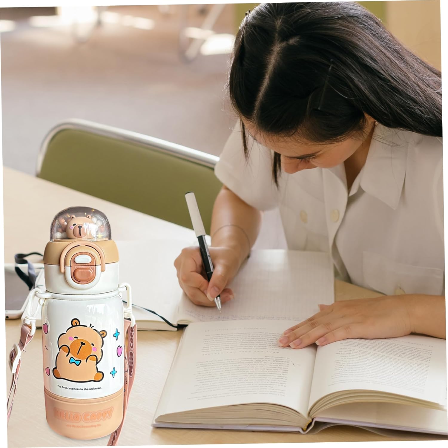 Comodità portatile: dotata di una pratica cannuccia, una cinghia di sicurezza e un bicchiere staccabile, questa bottiglia da 400 ml/14 once è facile da trasportare e perfetta per la scuola, le attività all'aperto e i viaggi. Simpatico design a forma di animale: caratterizzata da un adorabile motivo capibara, questa bottiglia d'acqua piace ai bambini e alle ragazze che amano gli accessori kawaii e affascinanti, rendendo l'idratazione divertente e coinvolgente. Adatta ai bambini e sicura: la bottiglia d'acqua è sicura e utilizza materiali di qualità alimentare per garantire un'esperienza di consumo sicura per i bambini, promuovendo sane abitudini di idratazione. Acciaio inossidabile stabile: realizzata in acciaio inossidabile per uso alimentare, questa bottiglia d'acqua garantisce un uso duraturo ed è resistente al calore, mantenendo la temperatura e la sicurezza della bevanda. Isolamento versatile: progettato per mantenere le bevande a una temperatura ottimale, preserva efficacemente i liquidi freddi o caldi, offrendo comfort in ogni stagione per bambini e ragazze attivi.