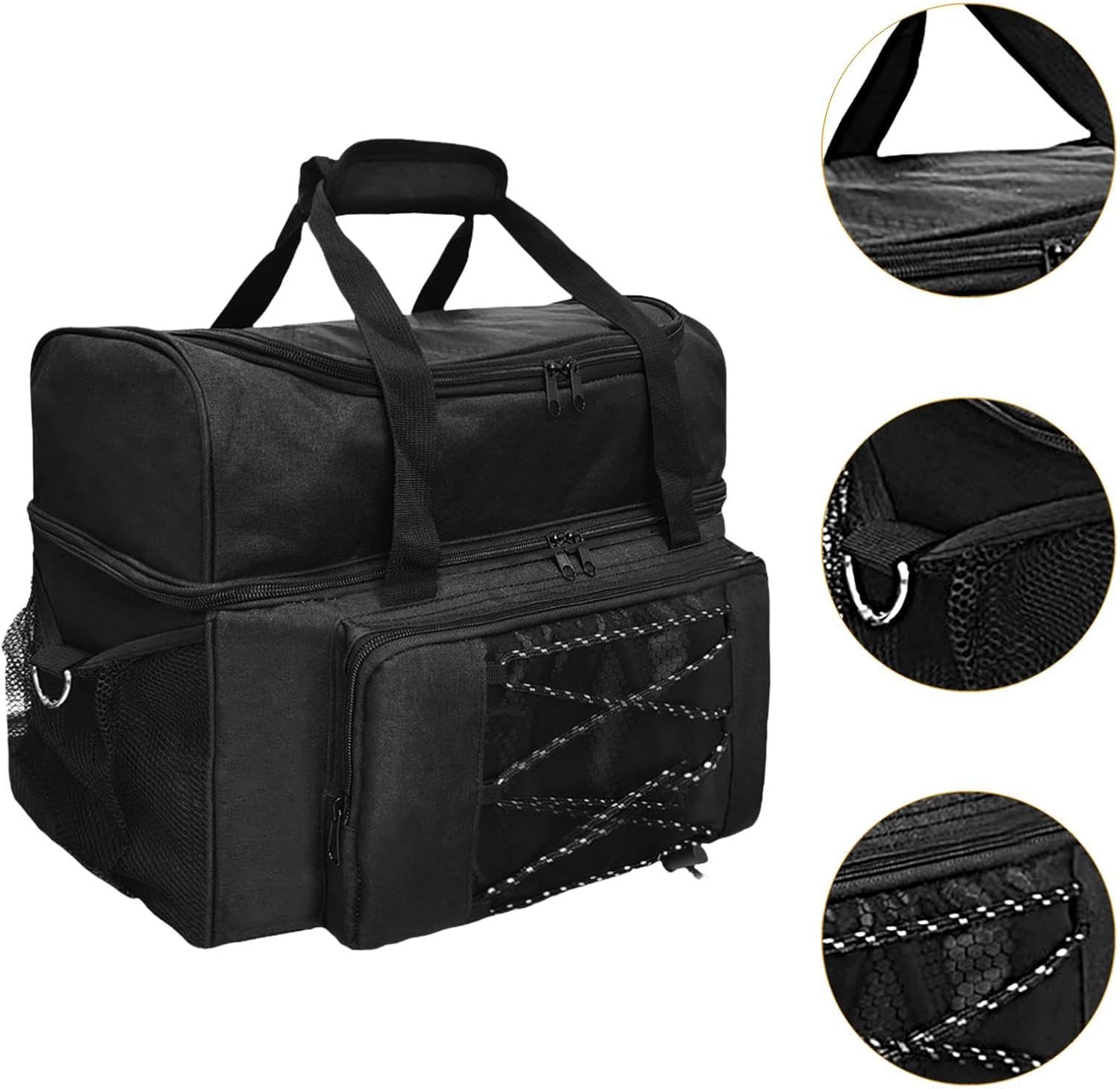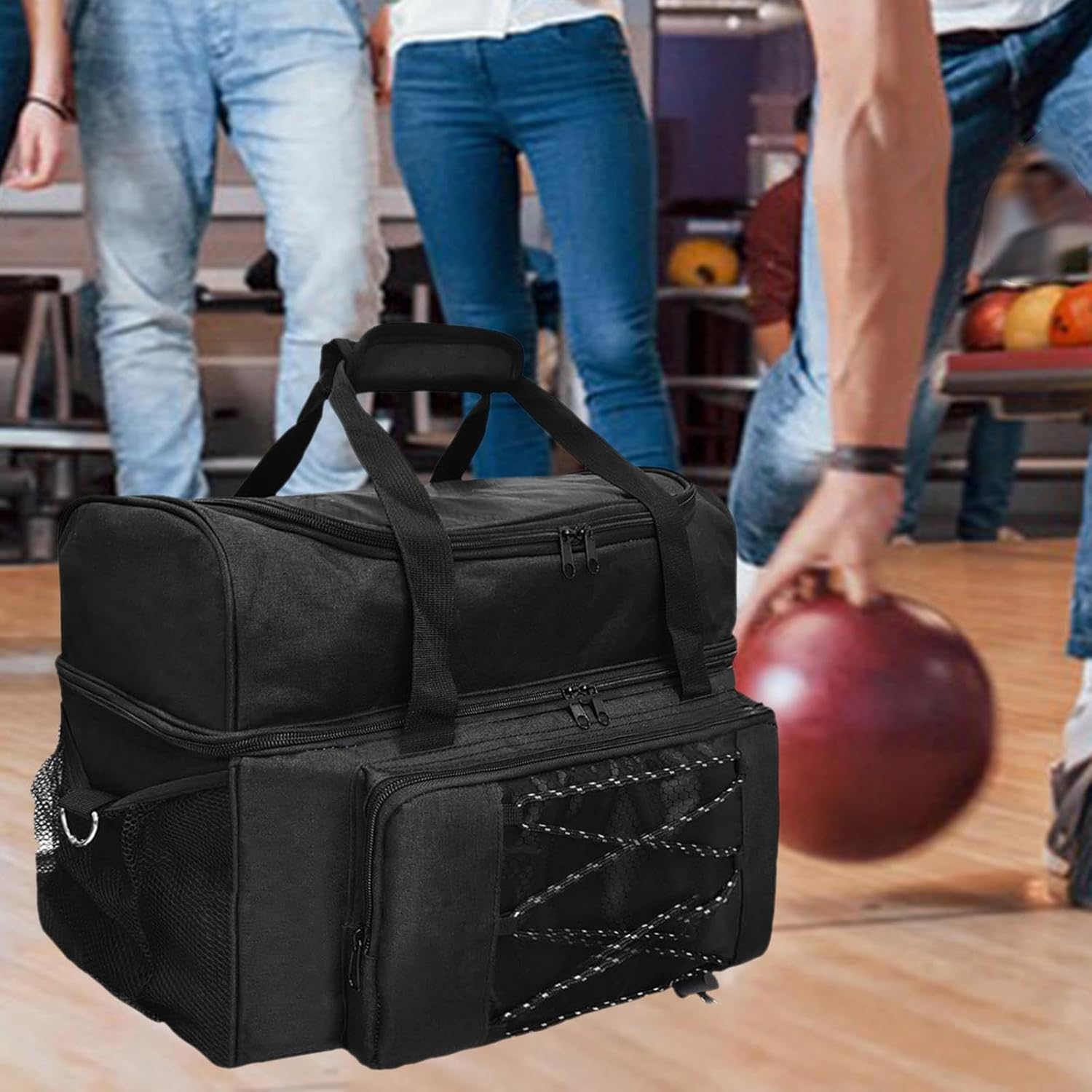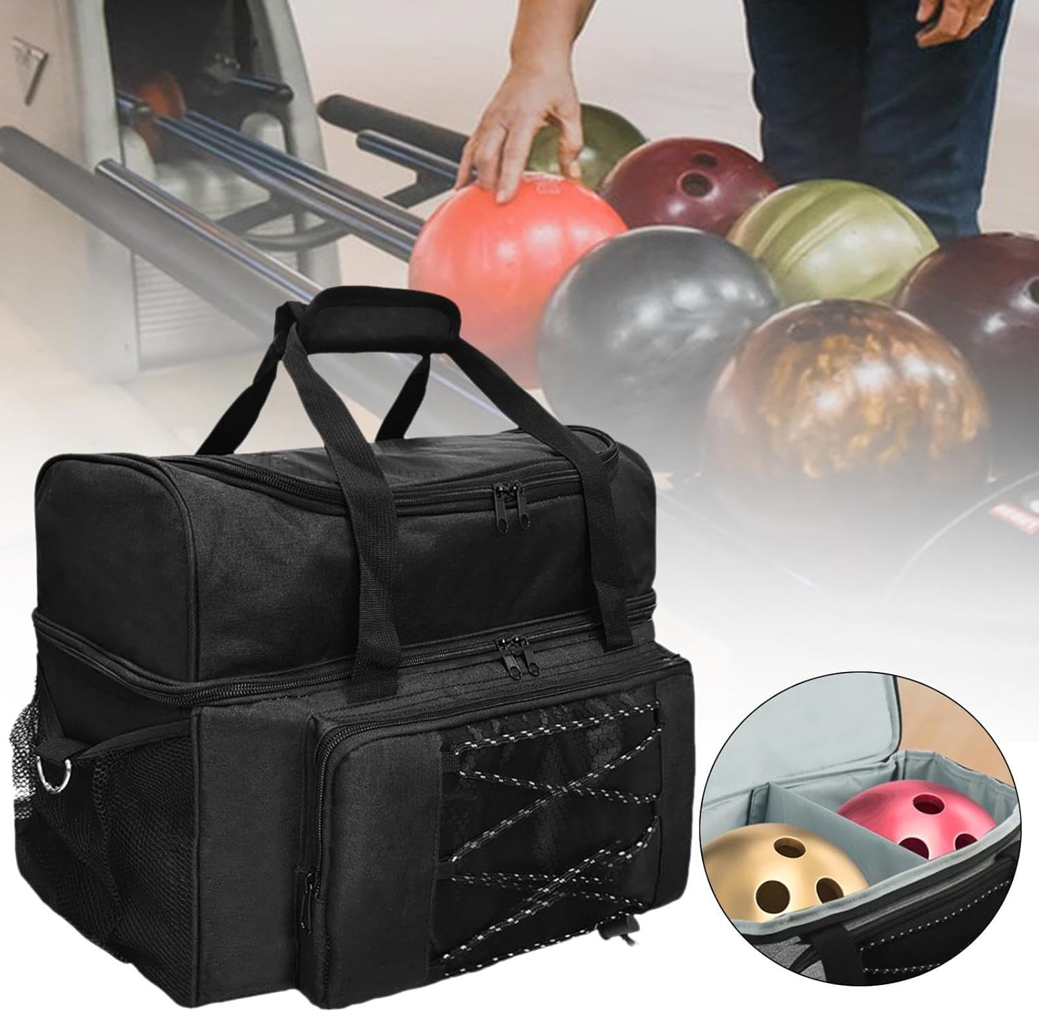 【Ampio spazio di archiviazione】: oltre allo scomparto principale per le scarpe, questa borsa presenta numerose piccole tasche per riporre comodamente telefono, chiavi, portafoglio e altri piccoli oggetti 【Comodo da trasportare】: la borsa ha maniglie imbottite e tracolla per un trasporto confortevole, rendendo facile il trasporto della palla da bowling 【Design con cerniera】: il design semplice ma efficiente della cerniera consente di accedere rapidamente ai tuoi , migliorando la tua esperienza di viaggio 【Portatile e adatta ai viaggi】: questa borsa da bowling è progettata per essere facilmente trasportabile, il che la rende perfetta per i viaggi. Ti consente di riporre e trasportare senza sforzo la palla da bowling e le scarpe ovunque tu vada 【Materiale】: realizzata in poliestere di qualità, questa borsa è resistente all'usura e robusta, garantendo un uso prolungato anche con viaggi frequenti