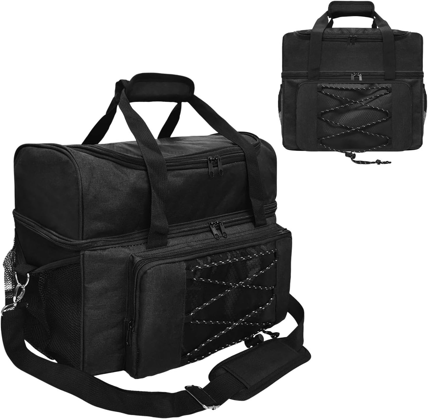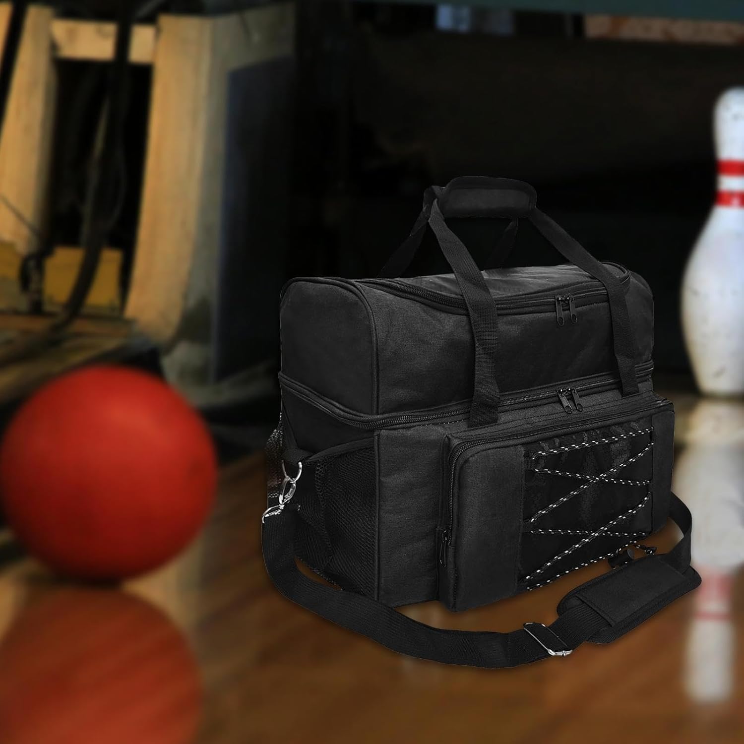 【Multifunzione】: le borse da bowling possono essere borse da trasporto per bowling, anche come borse di stoccaggio quando non si utilizzano le palle da bowling 【Porta con te tutta la tua attrezzatura da bowling】: questa borsa è abbastanza grande da contenere tutti i tuoi accessori da bowling. Può contenere facilmente 2 palle da bowling nello scomparto principale e ci sono tasche aggiuntive per organizzare bottiglie, calzini, portafogli, chiavi e altri oggetti 【Proteggi le tue palle da bowling】: realizzata in poliestere con cuciture robuste e fibbie in metallo di qualità, questa borsa può sopportare il peso e l'usura del trasporto di attrezzature da bowling pesanti. Lo spesso cuscinetto in schiuma protegge le tue palle da bowling da eventuali danni 【Stabile e Robusto】: il fondo ha 4 basi antiscivolo per una buona stabilità e riduce l'usura della borsa da bowling 【Comodo da trasportare】: la tracolla regolabile è realizzata in tessuto a rete spesso e imbottito, ti consente di trasportare comodamente la borsa da bowling senza esercitare troppa pressione sulle spalle. Niente più dolori per il trasporto della tua attrezzatura da bowling.