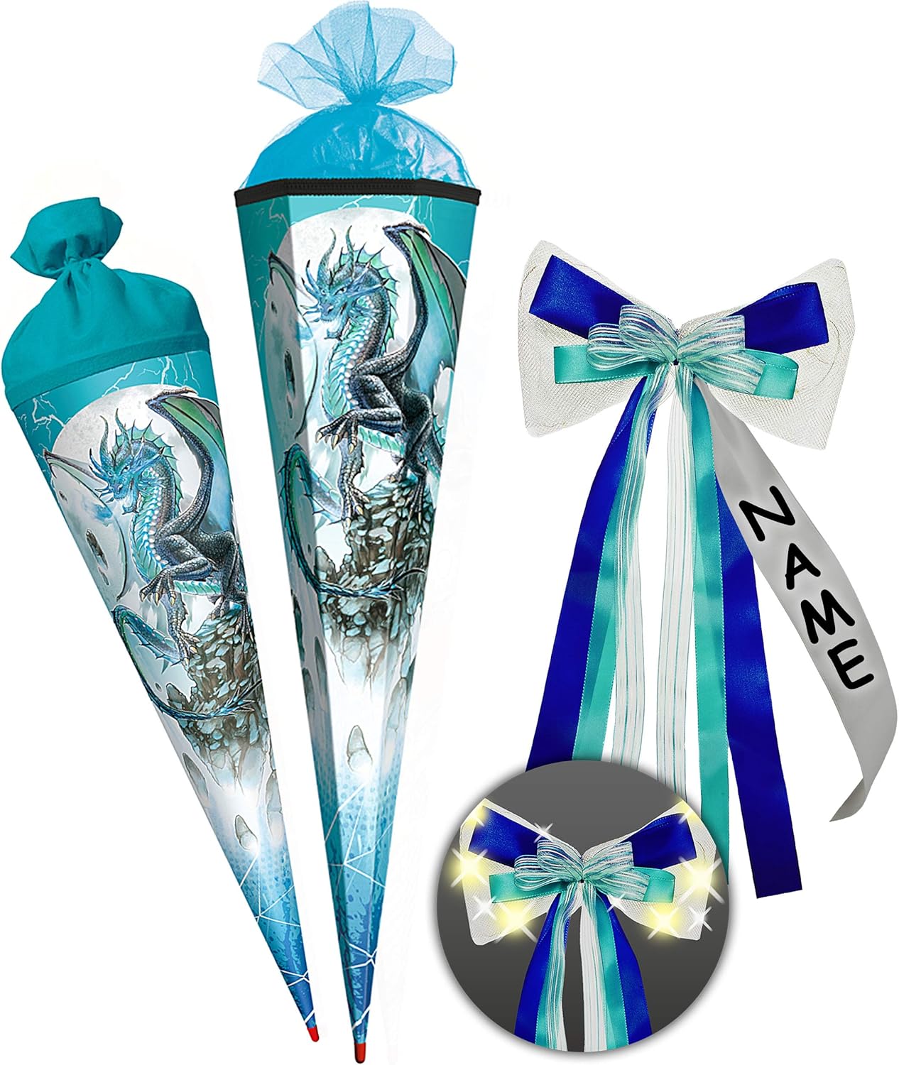 Cono scolastico riempito con imbottitura per ragazzi/ragazze a seconda del motivo. Coni scolastici 85 cm. Imbottitura di alta qualità con articoli di cancelleria e articoli scolastici per principianti