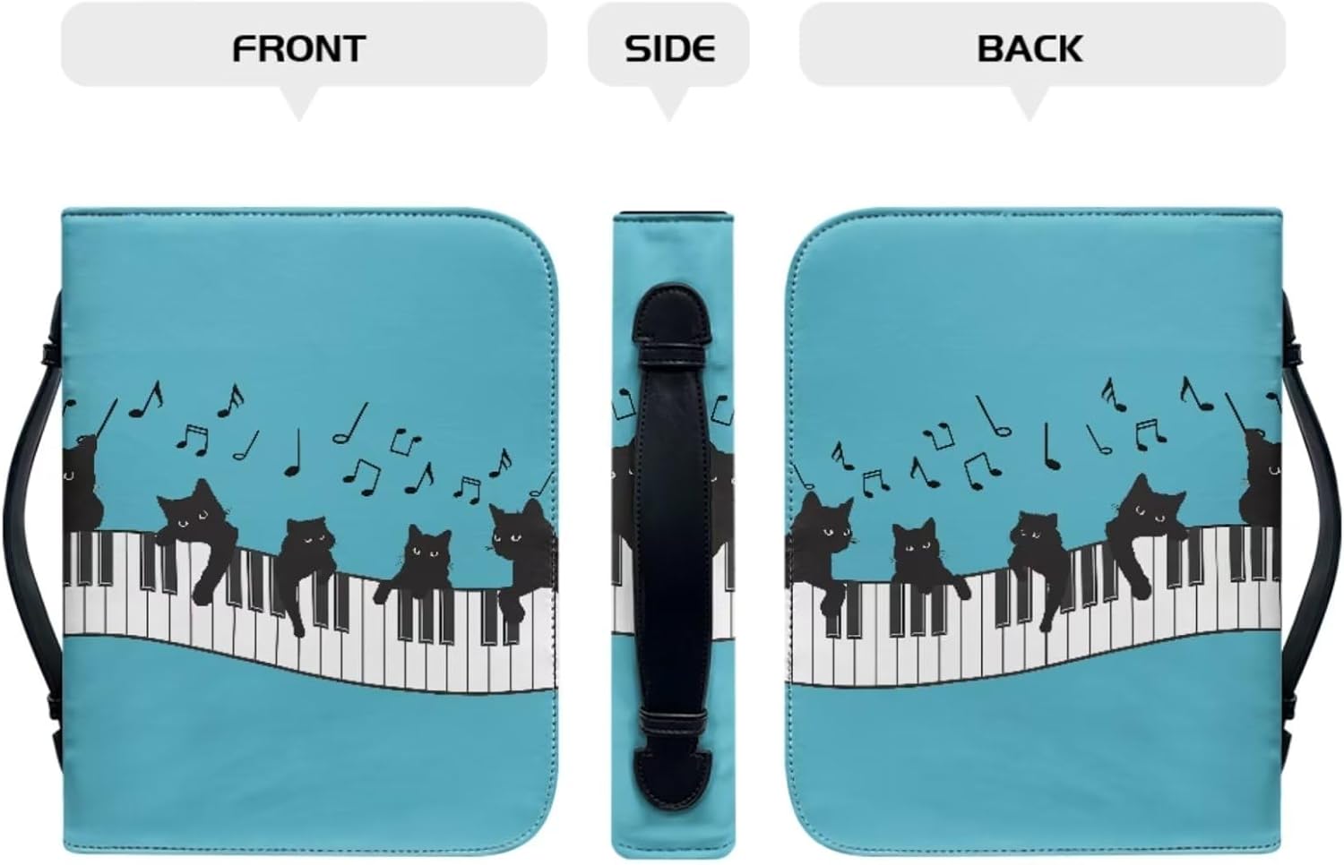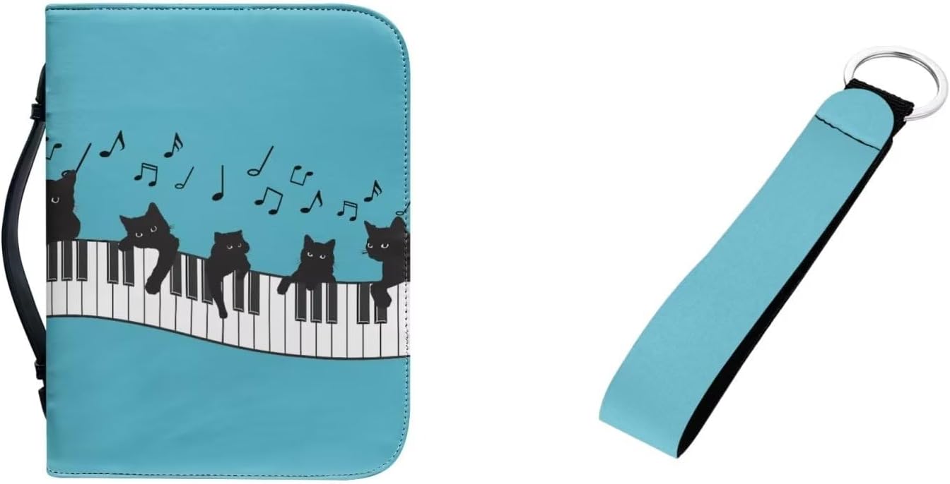 Borsa da trasporto per bibbia con gatto e pianoforte da donna, in pelle PU, con custodia per bibbia di grandi dimensioni, borsa da polso con cordino portachiavi