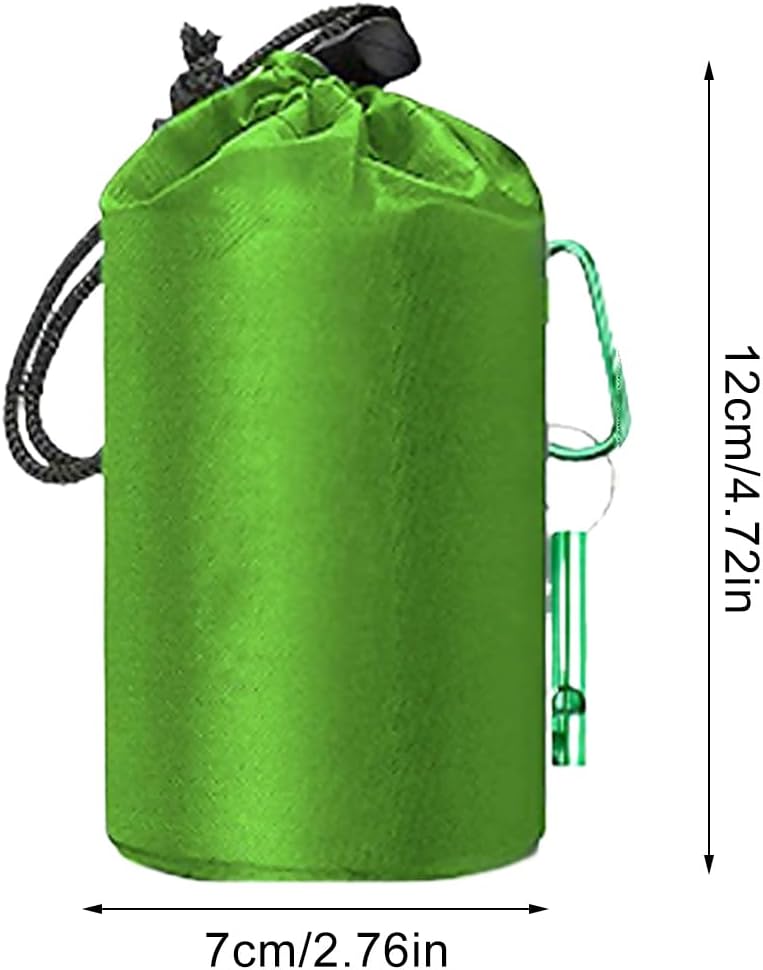 Funzionalità modernizzata: senza necessità di configurazioni complesse, questo sacco nanna è progettato per la velocità, tirando facilmente dalla sua custodia per superare le normali coperte spaziali, ideale sia per la preparazione urgente che per l'esplorazione all'aperto Sistema di ritenzione del calore: progettato per mantenere il comfort in condizioni climatiche avverse, il sacco nanna utilizza una pellicola di poliestere riflettente e una costruzione sigillata per bloccare il calore in modo efficiente, riducendo i rischi di ipotermia e garantendo calore in ambienti freddi o umidi Compatto e pronto per l'urgente: combinando portabilità e utilità, i sacchi nanna integrano un forte fischietto per la segnalazione, vani portaoggetti versatili, un moschettone facile da usare e una custodia montabile con fischietto per una funzionalità esterna affidabile Protezione resistente alle intemperie: realizzato con un materiale in poliestere impermeabile e antivento, impedisce la penetrazione dell'umidità, mantenendo gli utenti asciutti in caso di pioggia o neve, garantendo calore e sicurezza con il suo robusto design sigillato Robusto compagno di viaggio: combinando comfort leggero con resistenza agli strappi, questi sacchi nanna sono pratici per auto o uso domestico, progettati per adattarsi perfettamente a varie configurazioni di rifugi e migliorare la comodità durante escursioni o viaggi su strada con il loro materiale resistente