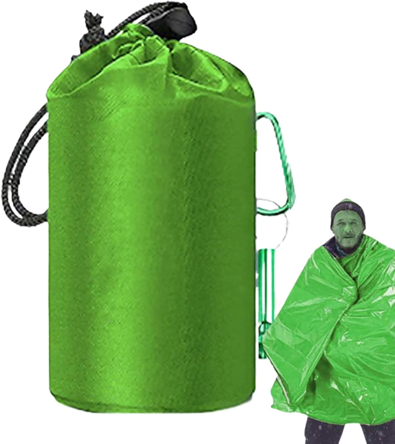 Design a distribuzione rapida: progettato senza complessità, questo sacco nanna offre una rapida distribuzione tirando direttamente dalla sua custodia compatta, offrendo prestazioni perfette rispetto alle coperte spaziali convenzionali per esigenze esterne e urgenti Protezione dagli agenti atmosferici: questo sacco a pelo garantisce sicurezza in condizioni avverse riducendo al minimo la perdita di calore attraverso un design sigillato e utilizzando una pellicola di poliestere riflettente, offrendo un isolamento efficiente per ridurre i rischi di ipotermia durante le avventure fredde o bagnate Compatto e pronto per l'urgente: combinando portabilità e utilità, i sacchi nanna integrano un forte fischietto per la segnalazione, vani portaoggetti versatili, un moschettone facile da usare e una custodia montabile con fischietto per una funzionalità esterna affidabile Protezione per tutte le stagioni: la pellicola in poliestere impermeabile e antivento blocca efficacemente l'umidità, garantendo di rimanere asciutti in caso di pioggia o neve mantenendo calore e sicurezza con il suo design sigillato contro forti venti Attrezzatura compatta e affidabile: i sacchi nanna leggeri servono come attrezzatura indispensabile per l'auto o la casa, realizzati con materiale resistente agli strappi per un uso duraturo e si adattano a varie esigenze di riparo, rendendoli perfetti per escursioni o viaggi su strada con struttura compatta ma resistente