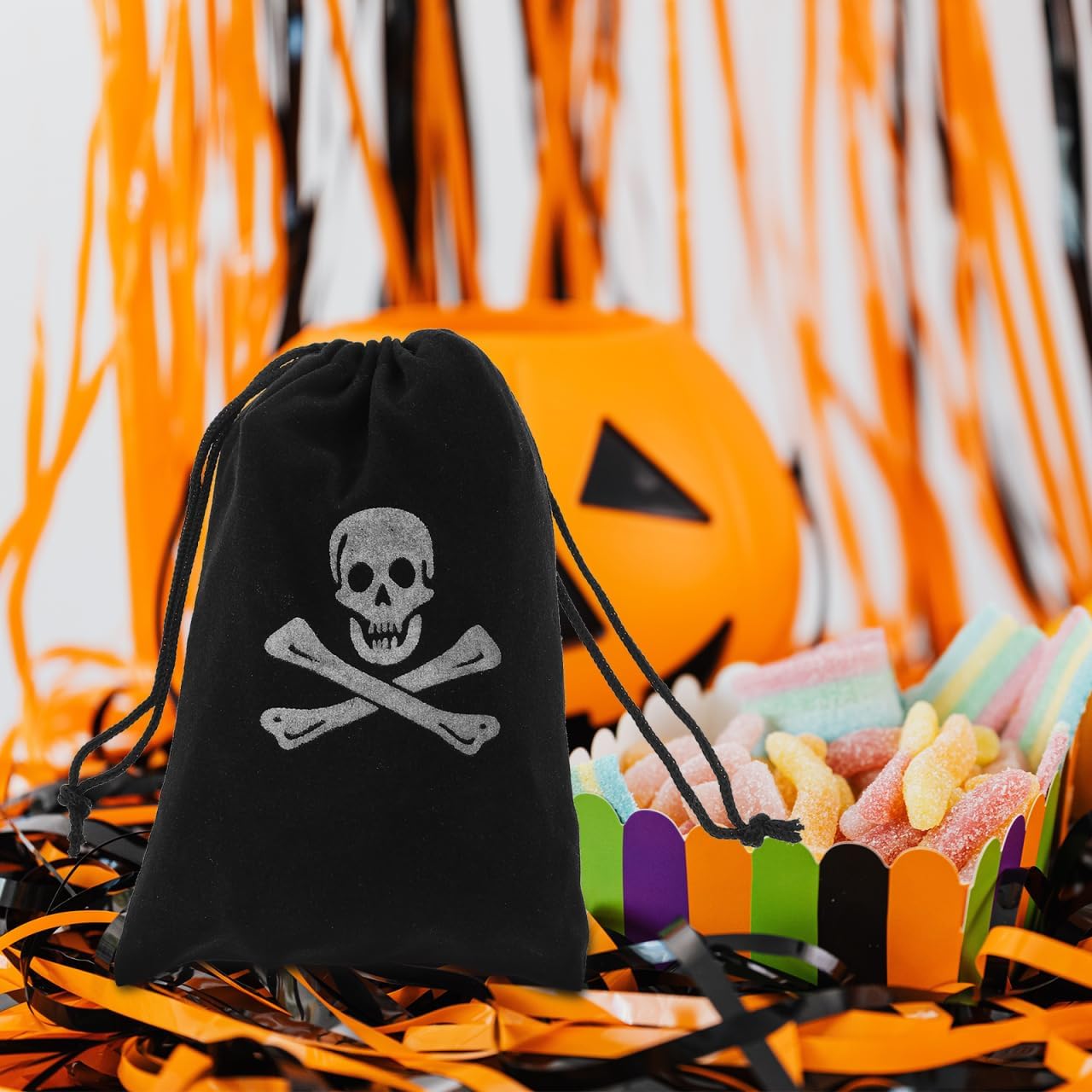 Borsa per caramelle con cordoncino: leggera e pratica da usare, non così facile, borsa del tesoro con cordoncino: una decorazione di Halloween e una fantastica borsa per i bambini ad Halloween, borsetta con gadget Porta soldi di Halloween: design Halloween, adatta per dolcetto o scherzetto e accessori per costumi, borsa da pirata Borsa per caramelle: non solo per le feste di Halloween! Può essere utilizzato per riporre tutto l'anno, sacchetti di caramelle di Halloween Borse a tema pirata: adatte per feste scolastiche, omaggi di Halloween, promozioni dolcetto o scherzetto, feste di Halloween e altro, borse per feste