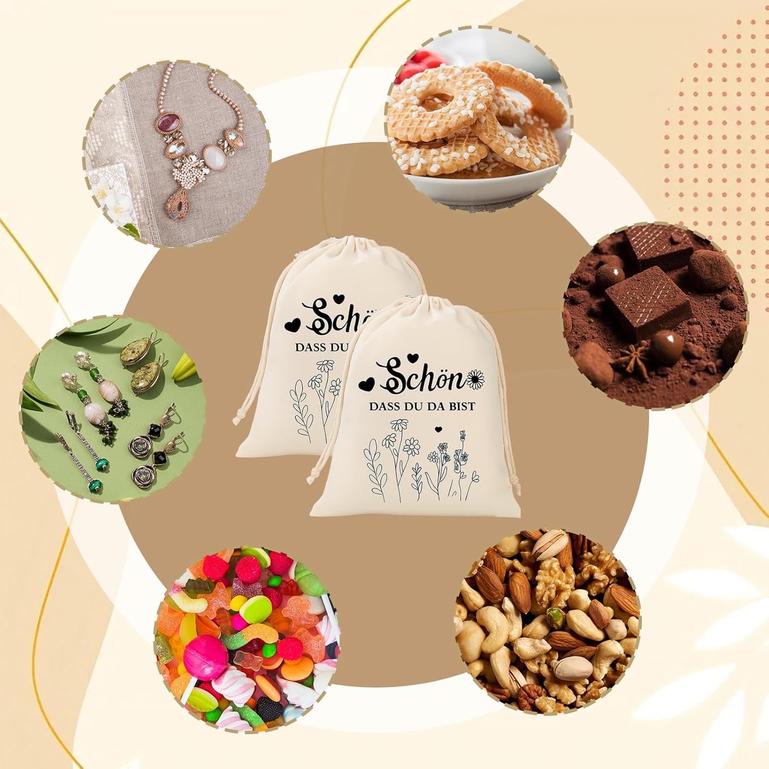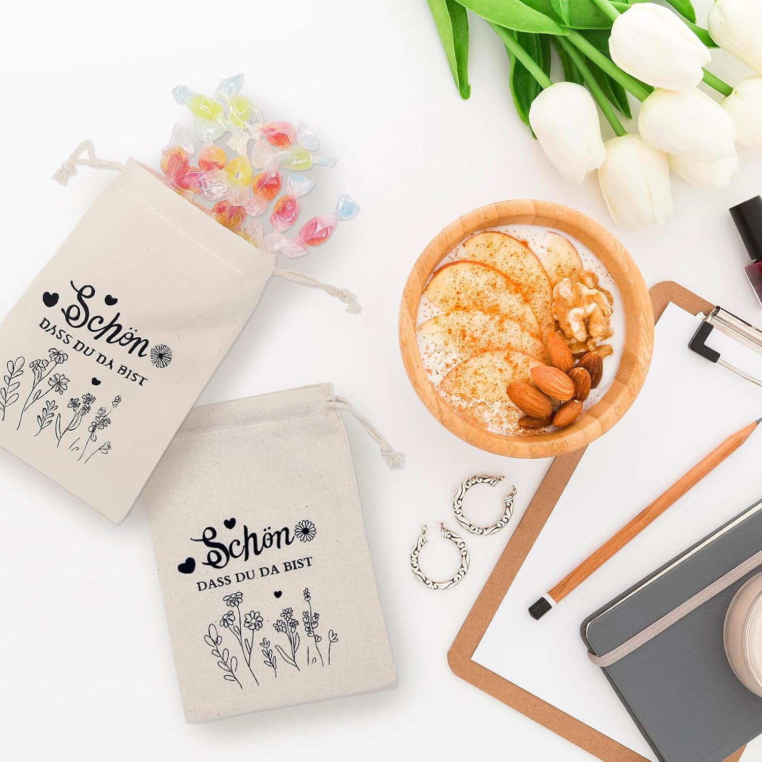 【ELENCO DEI PACCHETTI】 Riceverai 6 borse in tessuto con coulisse con stampa "Nice that you are there", dimensioni 16 * 11 cm, piccole e facili da trasportare. Ideale come borsa regalo o per riporre piccoli oggetti quotidiani in casa. 【MATERIALE】 La borsa in cotone è realizzata in materiale ecologico di alta qualità ed è riutilizzabile. Il cordoncino è realizzato in corda di cotone di alta qualità, resistente e durevole per evitare che gli oggetti cadano. 【MULTIFUNZIONALE】 Questo sacchetto in tessuto può essere utilizzato come sacchetto regalo, sacchetto di caramelle, sacchetto di incenso, sacchetto di frutta secca, sacchetto per gioielli, ecc. Puoi riporre tutti i piccoli oggetti al suo interno. SERVIZIO】 Se hai domande sulle nostre borse in cotone, non esitare a contattarci e ti risponderemo il prima possibile. Buon shopping