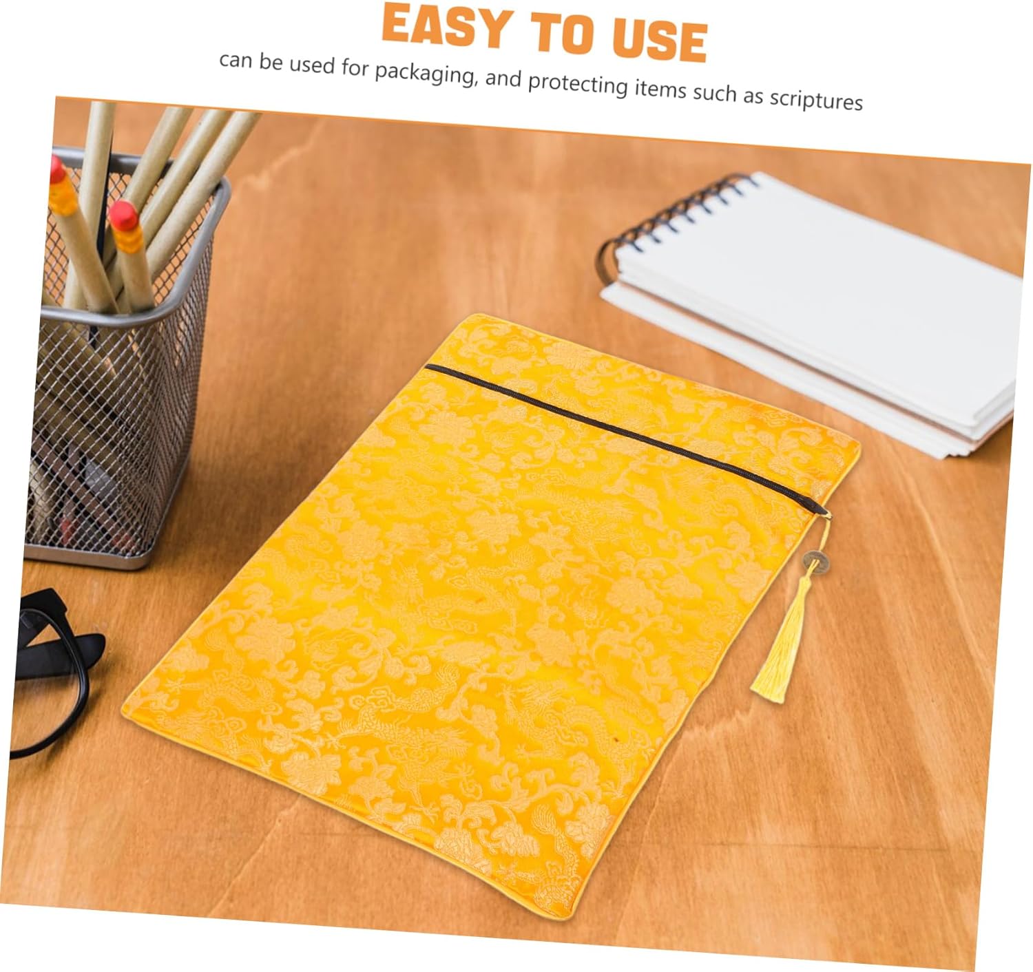 Funzionalità multiuso: ideale per tenere scritture, libri e altri oggetti preziosi, mantenendoli al sicuro e organizzati Facile accesso: la chiusura della cerniera consente l'accesso rapido e facile alle cose, migliorando la comodità Aspetto elegante: la nappe e il design elegante elevano l'aspetto della borsa, rendendola un'ottima opzione presente Materiale: costruito con tessuto robusto e easytoclean, garantendo che la borsa resista quotidianamente all'usura e alla lacrima Design versatile: adatto per una di occasioni, dagli eventi religiosi all'uso personale, grazie al suo classico stile di imballaggio del libro