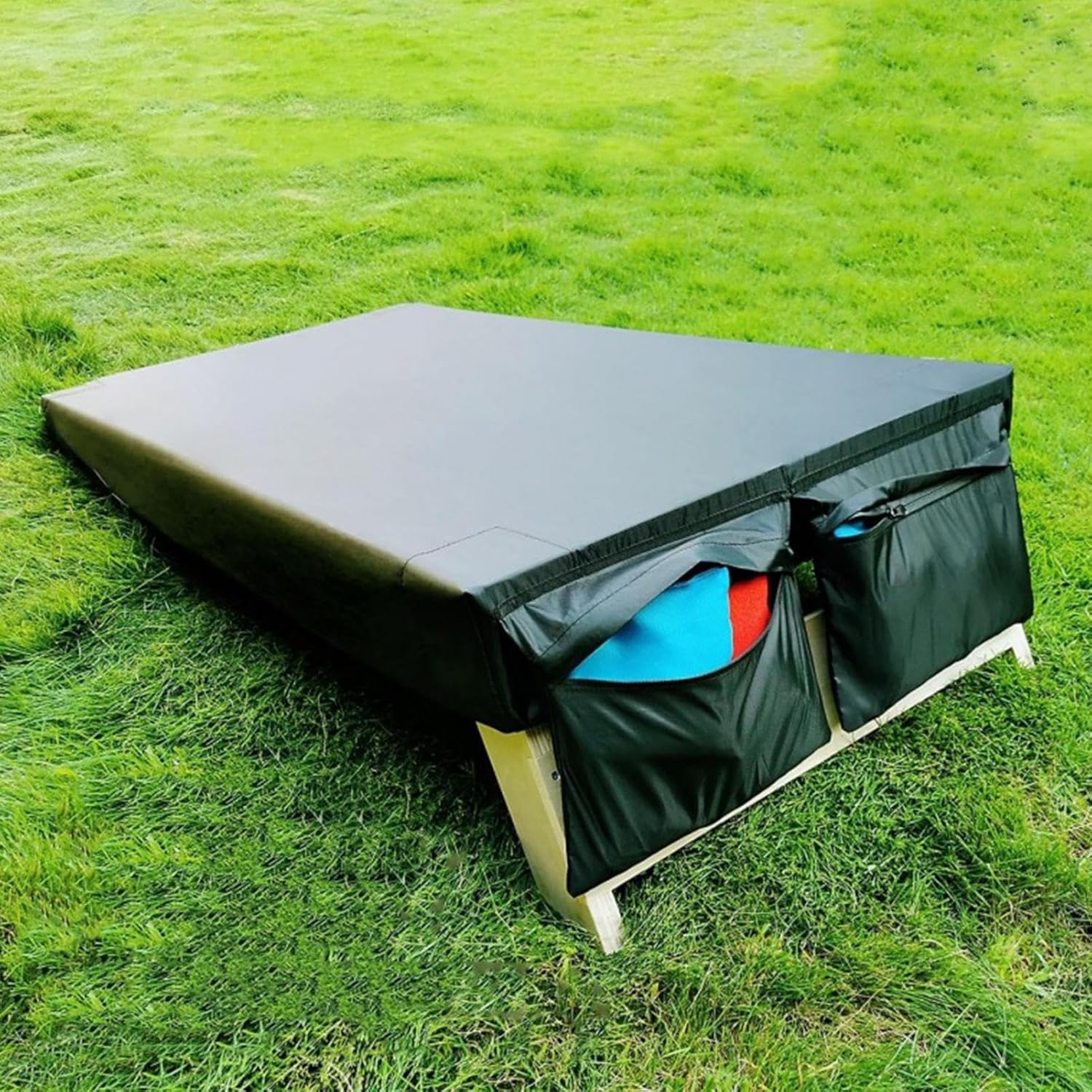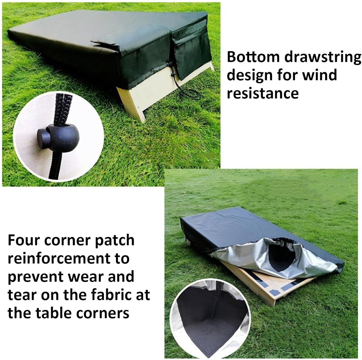 Protezione UV e antipolvere: queste coperture per cornhole sono dotate di una comoda coulisse che può essere stretta per resistere a forti venti e impedire che le coperture vengano spazzate via. Proteggono anche la tavola da danni causati da pioggia, raggi UV, polvere o escrementi di uccelli. Comodo stoccaggio: mantieni i tuoi pouf e gli accessori in una comoda tasca sul coperchio. La chiusura lampo impermeabile li protegge da umidità e polvere. Questa copertura per cornhole può contenere almeno 8 sacchi di fagioli a grandezza naturale e altri oggetti. Materiale: le nostre coperture per cornhole sono realizzate in tessuto Oxford ad alta densità con rivestimento in colla argentata per proteggere le tavole da polvere, raggi UV e danni causati dall'acqua. Il materiale di qualità garantisce una maggiore durata, garantendo protezione. Maggiore durata: con il nostro design con coulisse inferiore, le nostre coperture per cornhole sono costruite per resistere a forti venti e rimanere saldamente in posizione. Il nostro materiale extra spesso protegge gli angoli dei coperchi per evitare usura e crepe, garantendo durata e protezione durature. Vestibilità versatile: anche la tua tavola cornhole può rimanere al sicuro da polvere, sporco e umidità con le nostre coperture che si adattano perfettamente a tutte le tavole di dimensioni standard. Facile da installare e rimuovere per una protezione di lunga durata.