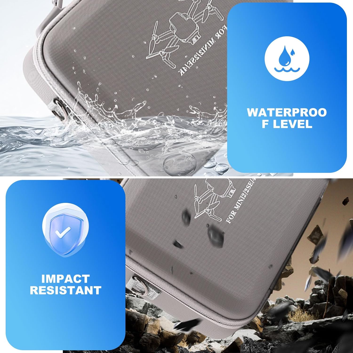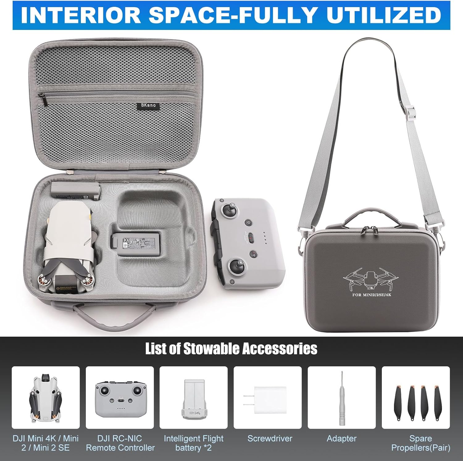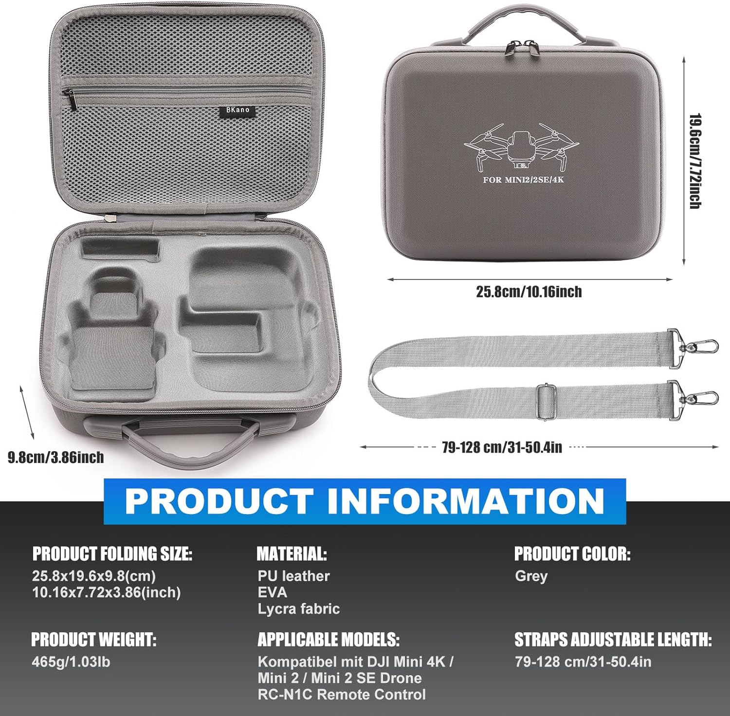 【Design personalizzato】questa Custodia da Trasporto per DJI Kit è studiata appositamente per ospitare i droni DJI Mini 4K, Mini 2, Mini 2 SE e i loro accessori, come batterie, telecomandi e eliche. Il doppio strato in Lycra non solo garantisce una adattazione perfetta a forma di drone, ma also crea una barriera elastica che protegge da urti lievi e vibrazioni durante il trasporto. 【Protezione Triple: Acqua, Urti e Polvere】La struttura esterna in borsa protettiva portatile in PU impermeabile blocca efficacemente le intemperie, mentre lo spesso interno in EVA rigido antishock sopporta cadute e pressioni without deforming. 【Grande capacità】Borsa da Viaggio Portatile con compartimento personalizzato per il telecomando RC-N1C - non è necessario rimuovere le leve di controllo! Questa Borsa da Viaggio Portatile può ospitare: 1 drone DJI Mini 4K/Mini 2/Mini 2 SE, 1 telecomando RC-N1C, 3 batterie, 1 caricabatterie, cavo RC, filtro, eliche e altri accessori. 【Borsa Portatile Impermeabile con doppia modalità di trasporto】Dotata di maniglia antiscivolo e alla tracolla regolabile (79-128 cm), questa custodia può essere portata a mano o a tracolla. Il design leggero (0.46 kg) e compatto la rende facile da inserire in zaini o valigie, perfetta per avventure outdoor e viaggi frequenti. 【La confezione include】1 custodia per DJI Mini 4K/Mini 2/Mini 2 SE(25.8×19.6×9.8 cm), 1 alla tracolla regolabile. NOTA: Drone e accessori non inclusi.e compatto la rende facile da inserire in zaini o valigie, perfetta per avventure outdoor e viaggi frequenti.