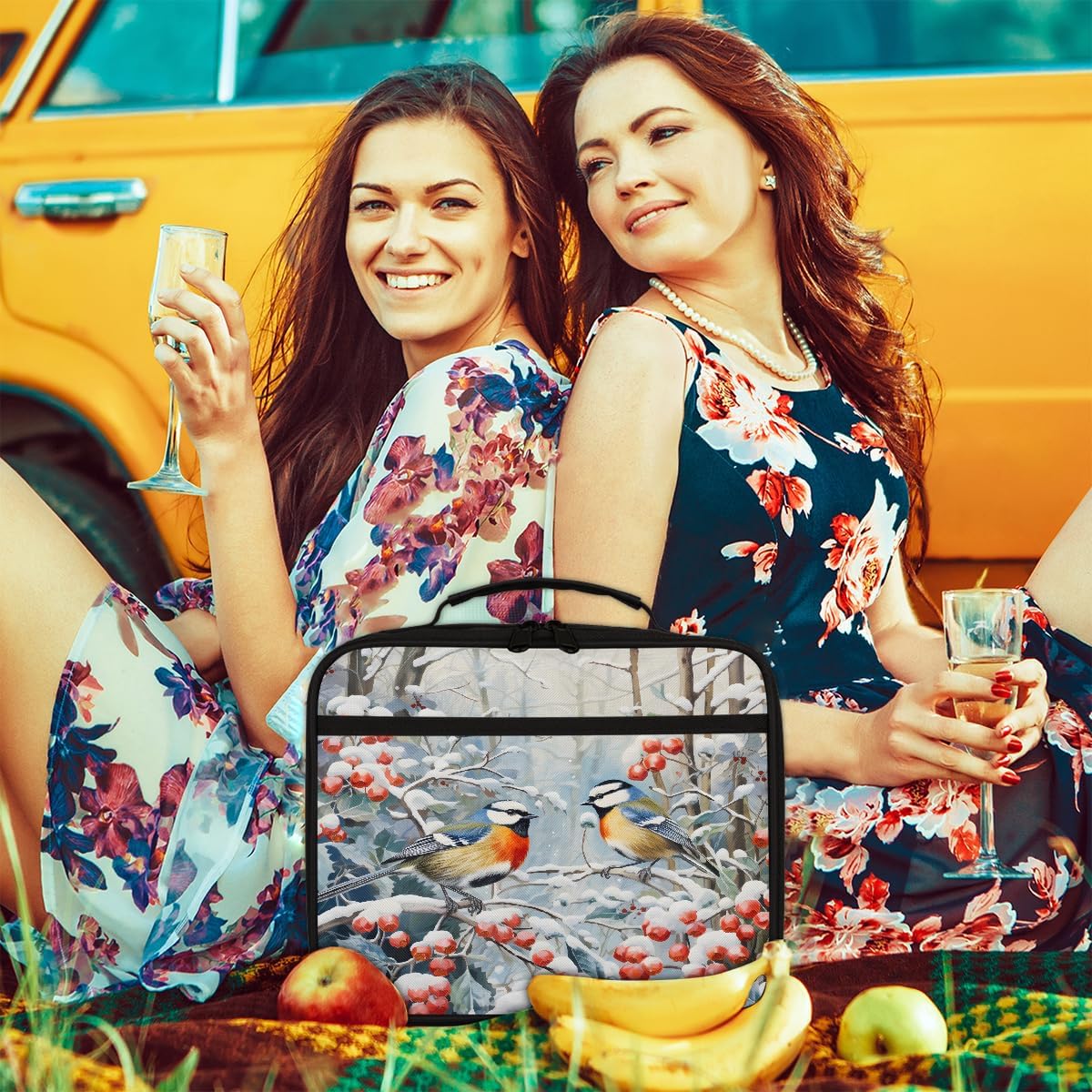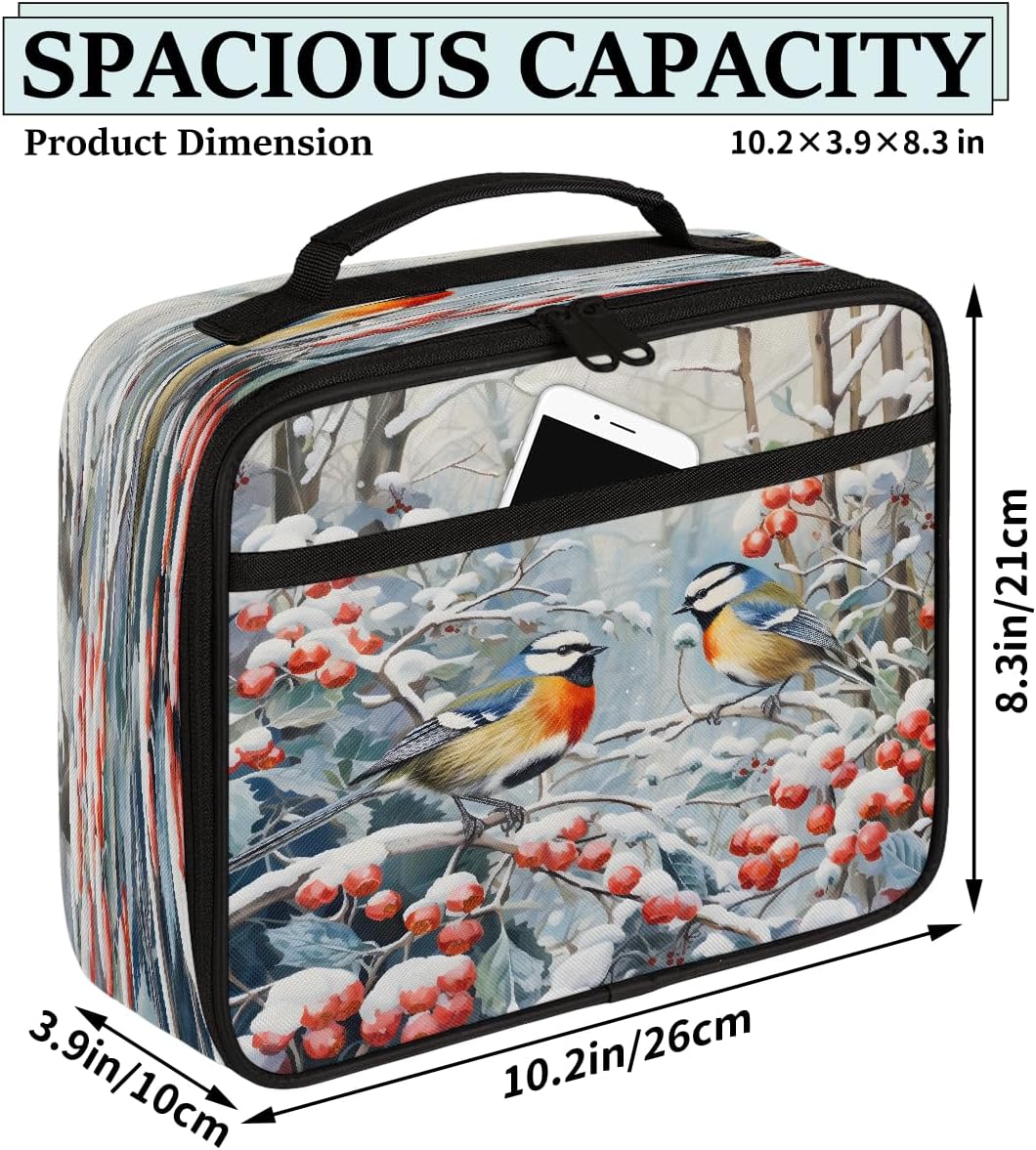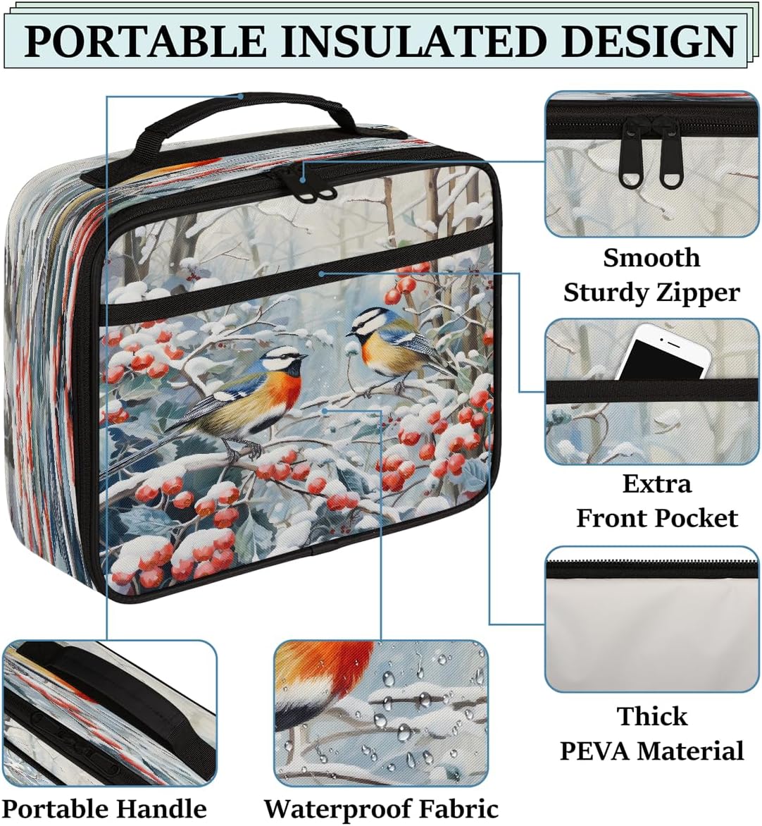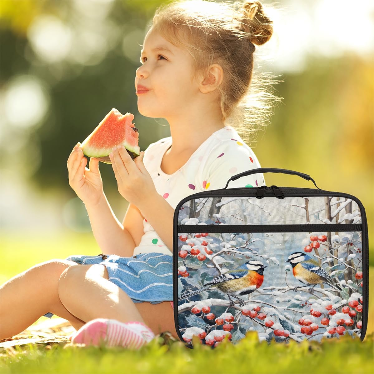 Borsa per il pranzo invernale per bambini, con agrifoglio, bacca, uccelli, borsa per il pranzo, per ragazzi e ragazze, riutilizzabile, isolata, bento, per scuola, picnic, lavoro