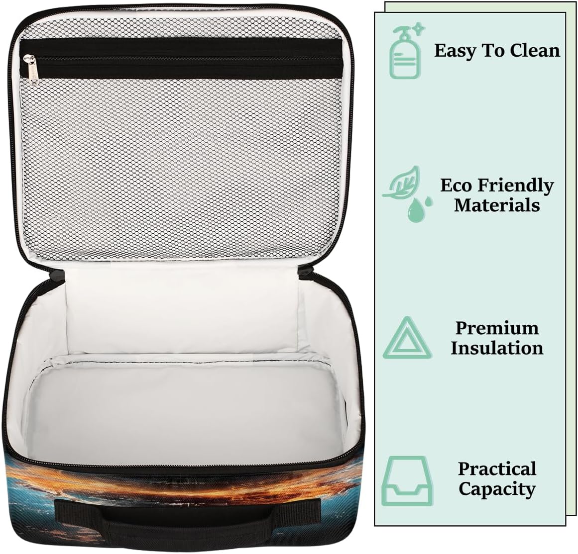 ✿ Dimensioni della borsa portapranzo: 21 x 10 x 26 cm, si adatta perfettamente al tuo portapranzo, frutta, snack e persino bottiglia per frullati proteici ✿ Materiale del contenitore per il pranzo isolato: la borsa per il pranzo riutilizzabile è realizzata in poliestere altamente resistente, facile da pulire, mantiene il cibo o le bevande fresche, calde o fredde per diverse ore, a prova di perdite per l'uso quotidiano Grande capacità: 1 tasca principale con cerniera per riporre facilmente molte cose, come bevande, snack, panini, frutta o verdura; 1 tasca frontale esterna con cerniera per riporre caramelle, chiavi, telefono e altri piccoli oggetti da portare in ufficio, escursioni, viaggi, feste ✿ Piume: la nostra borsa per il pranzo ha 1 tasca principale con cerniera per mantenere cibi e bevande caldi o freschi, 1 grande tasca frontale per chiavi, carte, telefoni e così via. È molto facile da portare ovunque come viaggi, spiaggia e sport; è facile da trasportare, a tracolla, inoltre, la tracolla può essere rimossa e trasformata in una borsa portatile per i pasti ✿ Regalo perfetto: motivi unici, regali unici, ideali per gli amici durante il festival, come compleanno, Natale, giorno della scuola