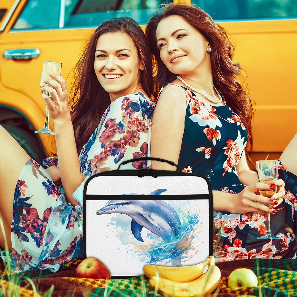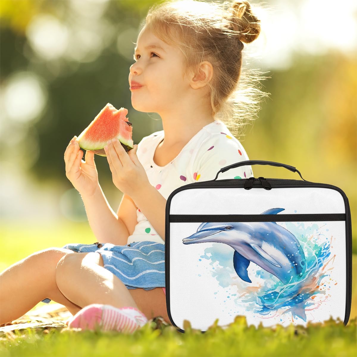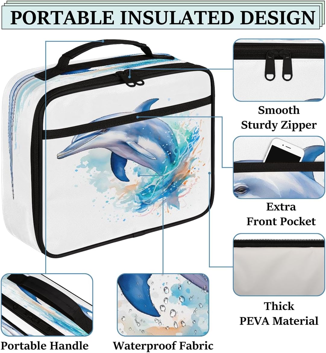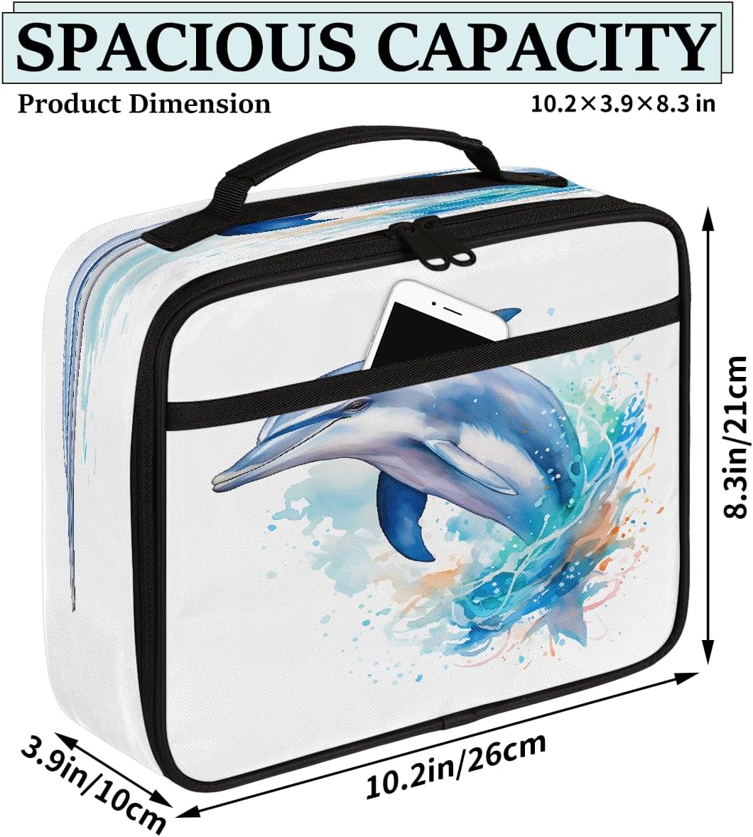 Borsa per il pranzo per bambini con delfino marino ad acquerello che salta arte pittura borsa per il pranzo per ragazzi ragazze riutilizzabile isolata bento tote bag per scuola picnic lavoro