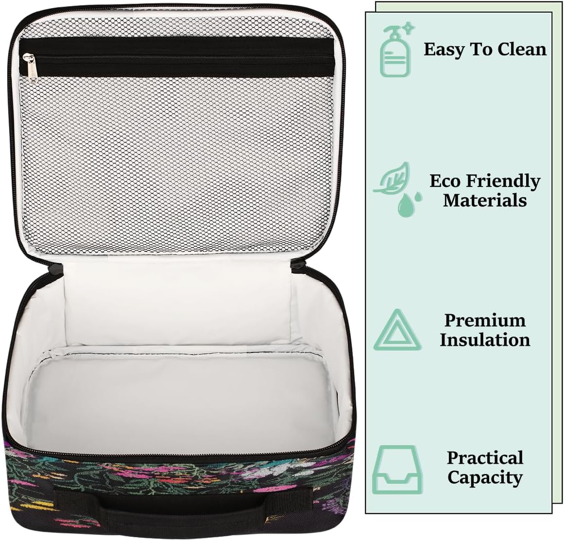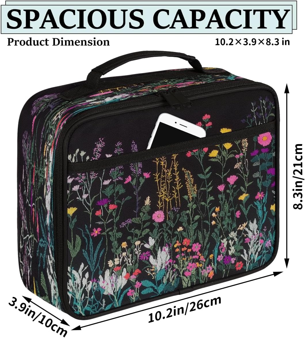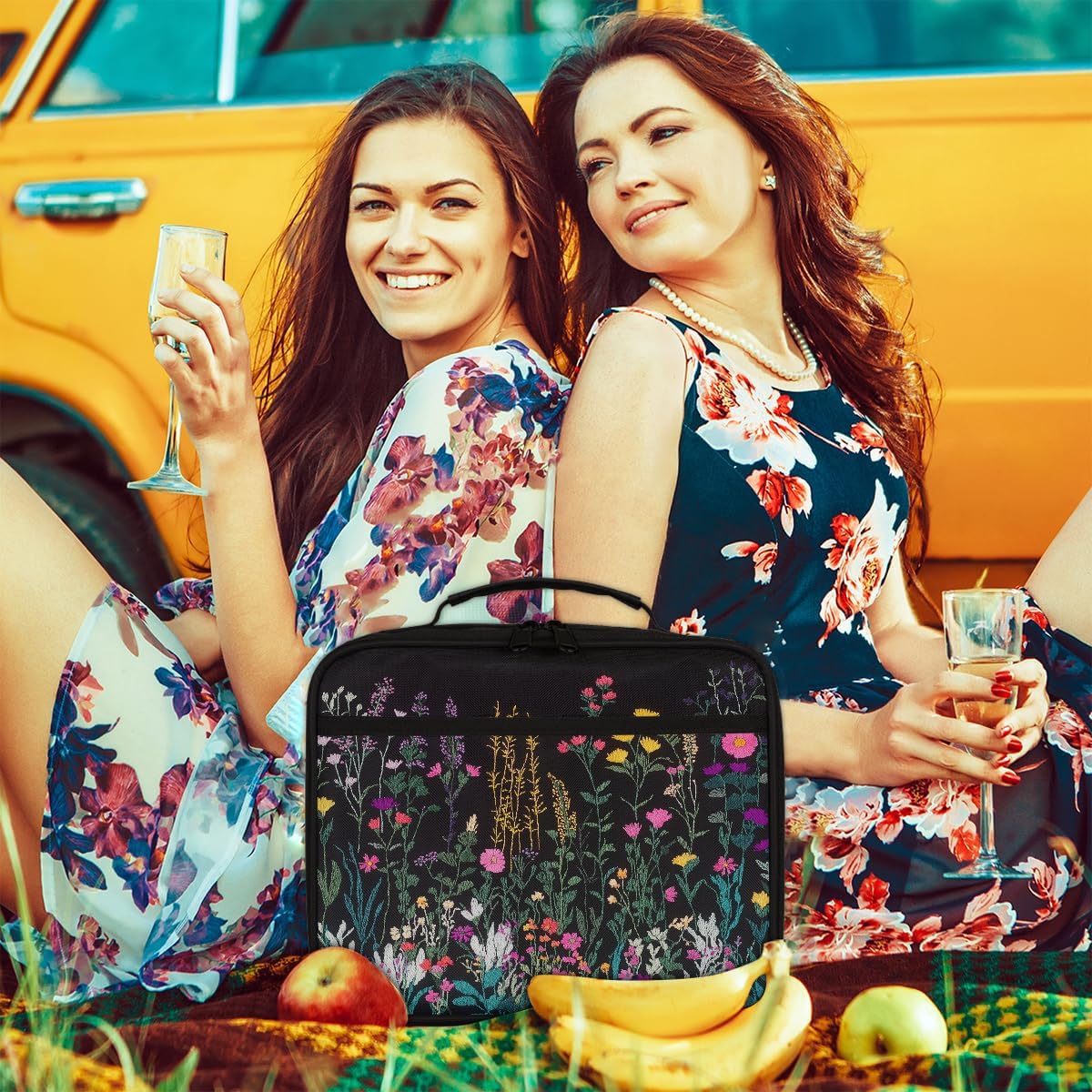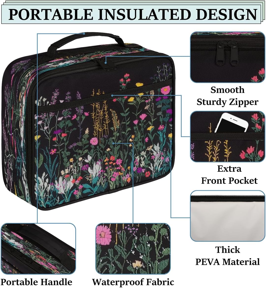 Borsa per il pranzo per bambini, con fiori selvatici, piante, floreale, per ragazzi e ragazze, riutilizzabile, isolata, bento, borsa tote per scuola, picnic, lavoro