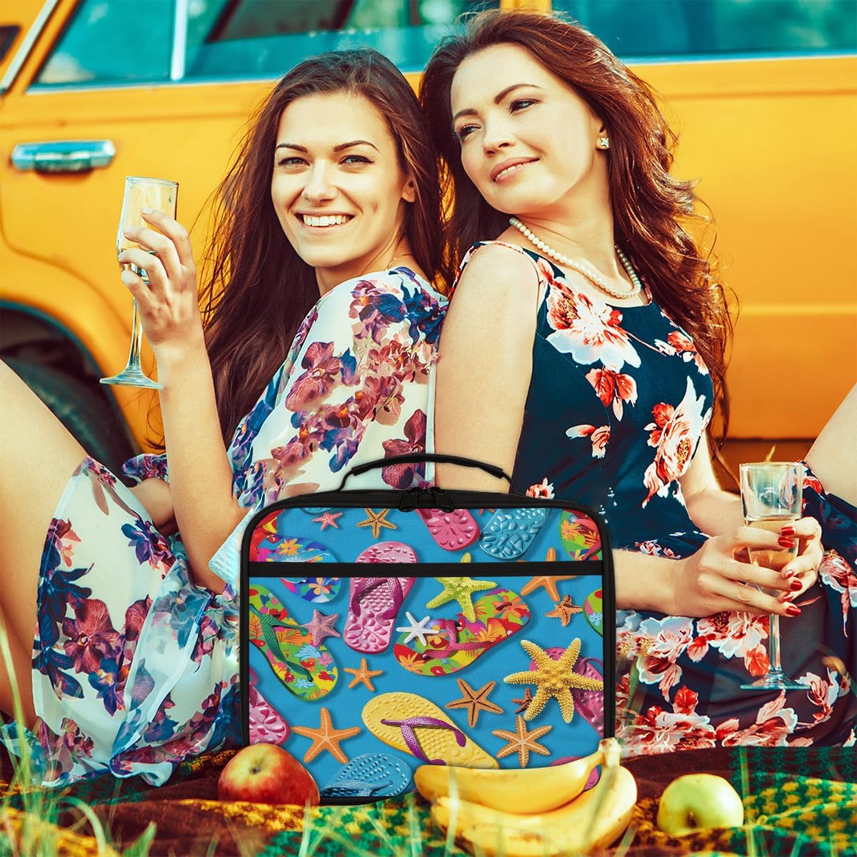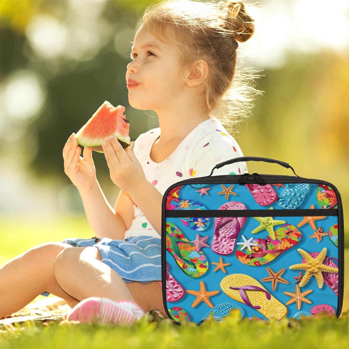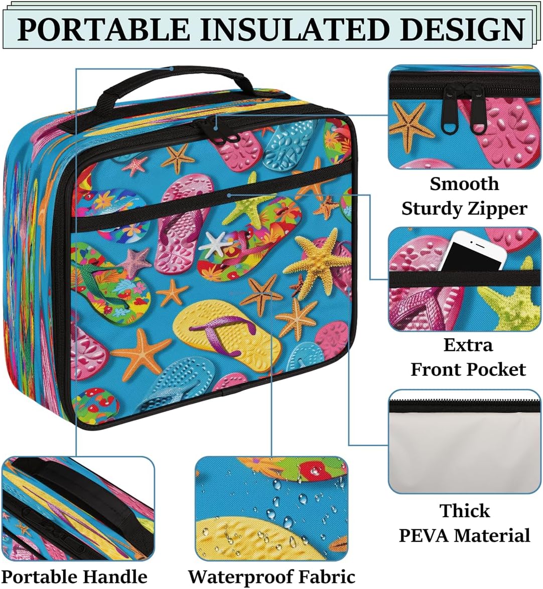 Borsa per il pranzo per bambini con infradito colorate estive stelle marine blu borsa per il pranzo per ragazzi ragazze riutilizzabile isolata bento tote bag per scuola picnic lavoro