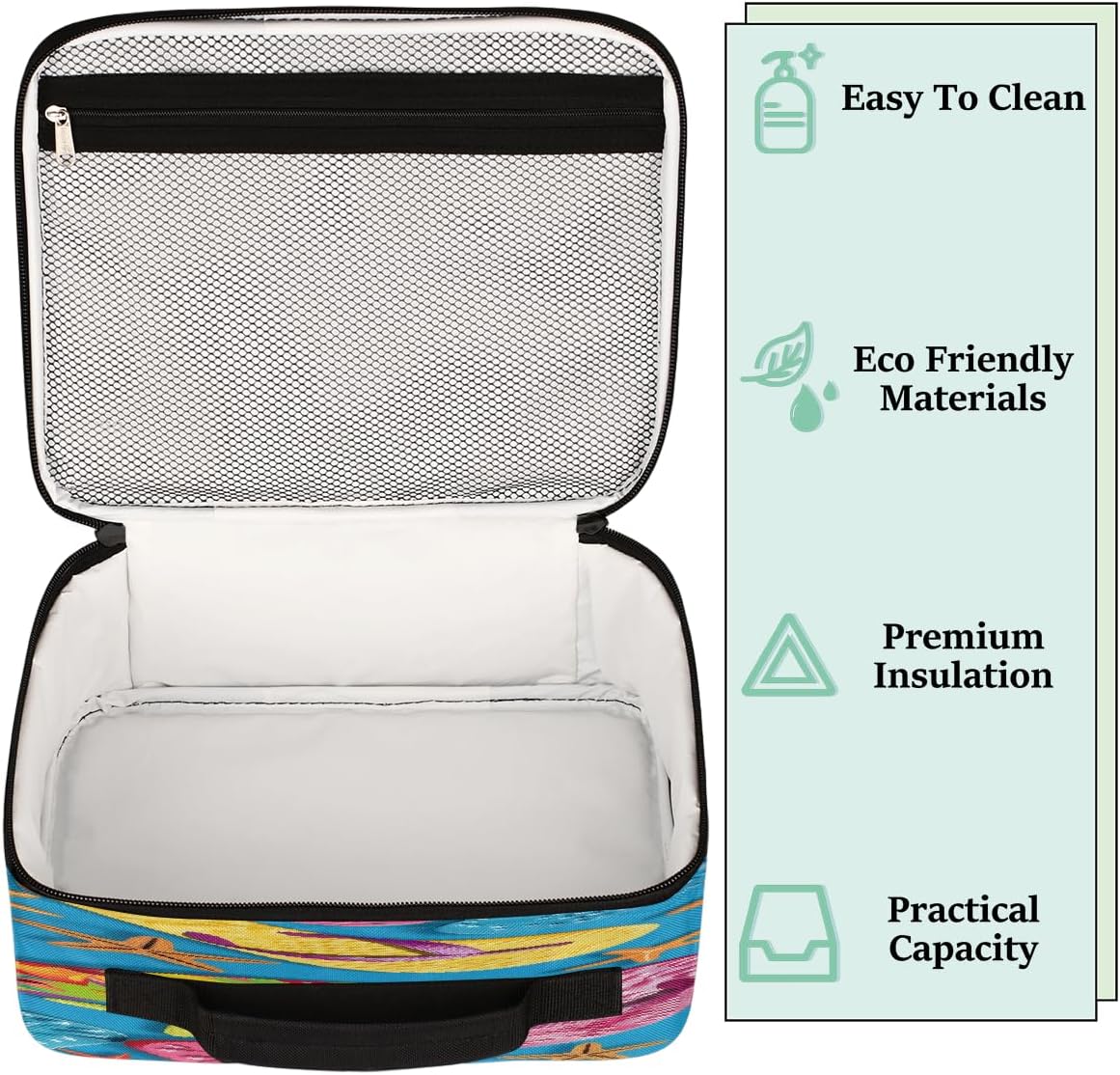 ✿ Dimensioni della borsa portapranzo: 21 x 10 x 26 cm, si adatta perfettamente al tuo portapranzo, frutta, snack e persino bottiglia per frullati proteici ✿ Materiale del contenitore per il pranzo isolato: la borsa per il pranzo riutilizzabile è realizzata in poliestere altamente resistente, facile da pulire, mantiene il cibo o le bevande fresche, calde o fredde per diverse ore, a prova di perdite per l'uso quotidiano Grande capacità: 1 tasca principale con cerniera per riporre facilmente molte cose, come bevande, snack, panini, frutta o verdura; 1 tasca frontale esterna con cerniera per riporre caramelle, chiavi, telefono e altri piccoli oggetti da portare in ufficio, escursioni, viaggi, feste ✿ Piume: la nostra borsa per il pranzo ha 1 tasca principale con cerniera per mantenere cibi e bevande caldi o freschi, 1 grande tasca frontale per chiavi, carte, telefoni e così via. È molto facile da portare ovunque come viaggi, spiaggia e sport; è facile da trasportare, a tracolla, inoltre, la tracolla può essere rimossa e trasformata in una borsa portatile per i pasti ✿ Regalo perfetto: motivi unici, regali unici, ideali per gli amici durante il festival, come compleanno, Natale, giorno della scuola