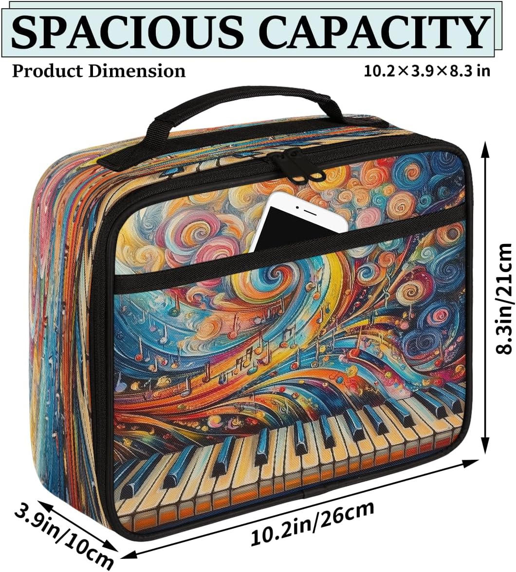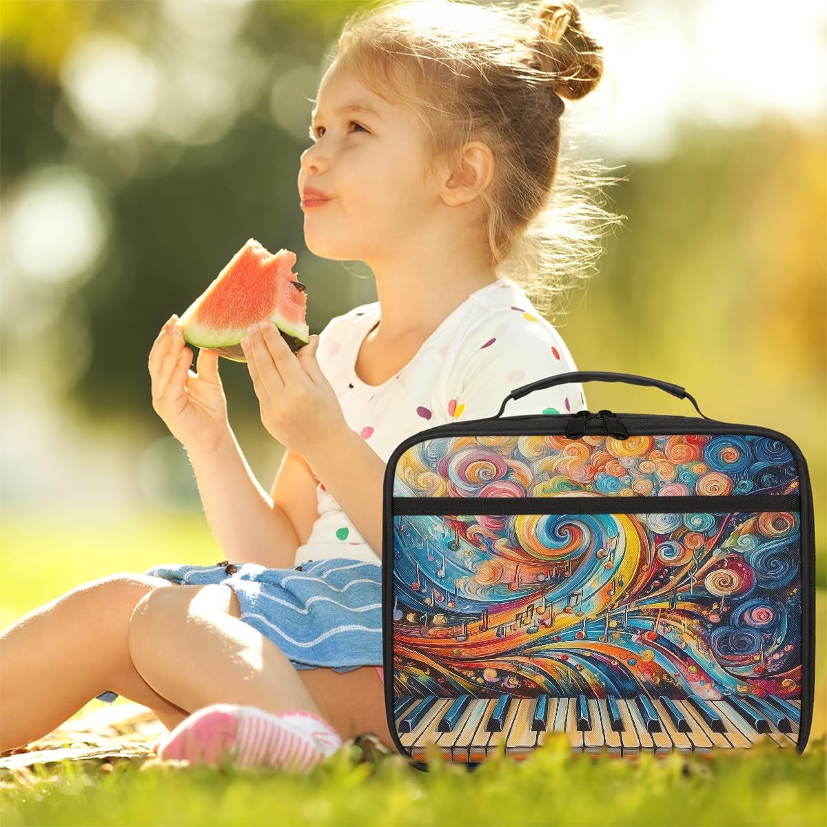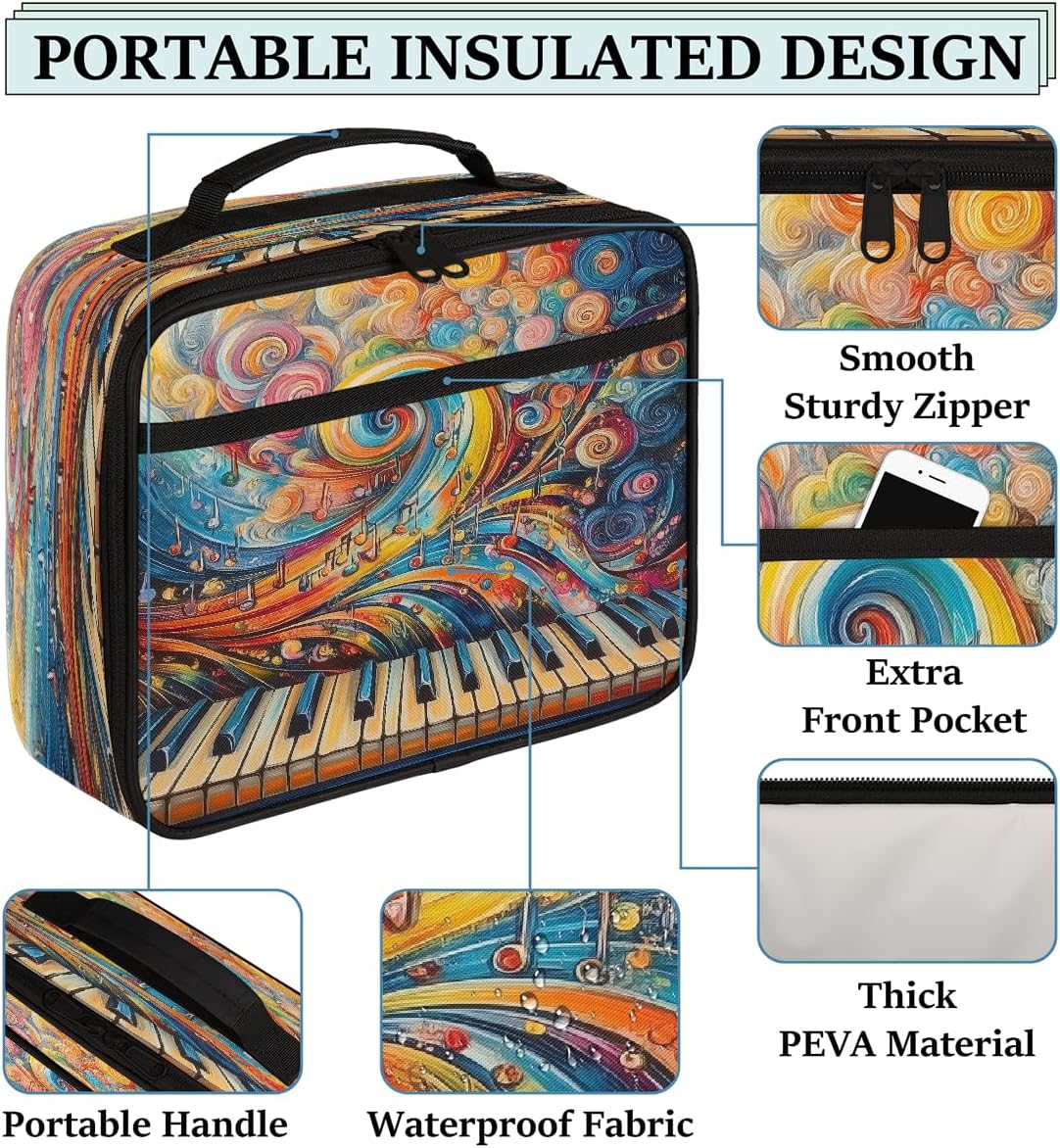 Borsa per il pranzo per bambini, con note musicali, con tastiera e pianoforte, per ragazzi e ragazze, riutilizzabile, isolata, per scuola, picnic, lavoro