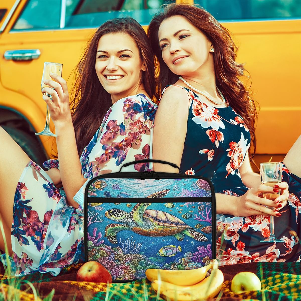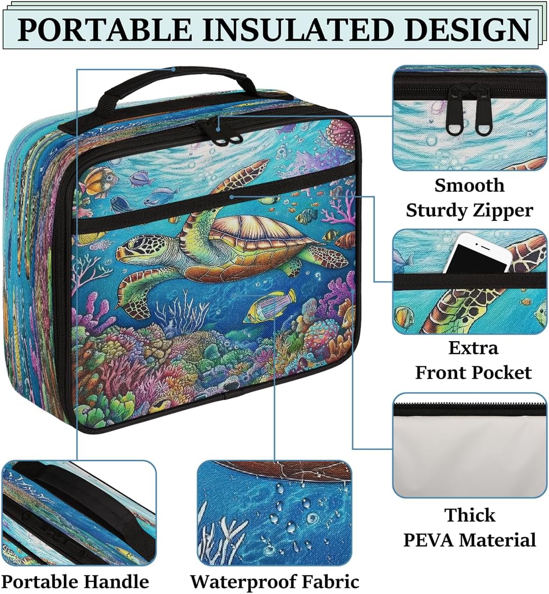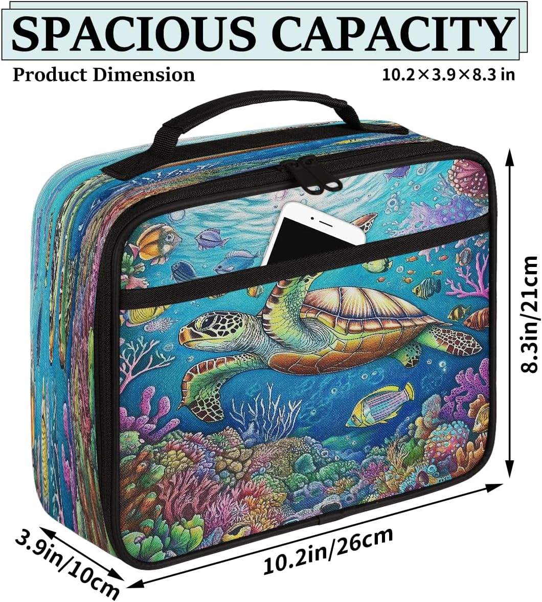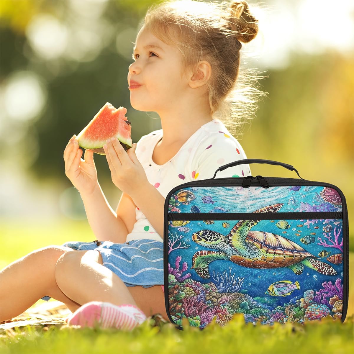 Borsa per il pranzo per bambini con tartaruga subacquea ad acquerello, borsa per il pranzo per ragazzi e ragazze, riutilizzabile, isolata, bento, borsa tote per scuola, picnic, lavoro