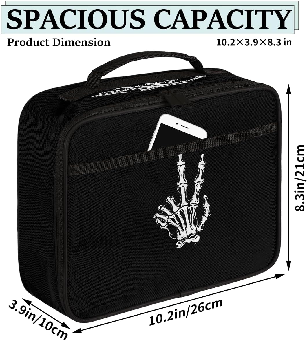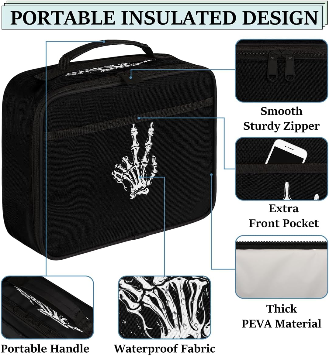 Borsa per il pranzo per bambini, divertente, con scheletro e segno roccioso, borsa per il pranzo per ragazzi e ragazze, riutilizzabile, isolata, bento, per scuola, picnic, lavoro