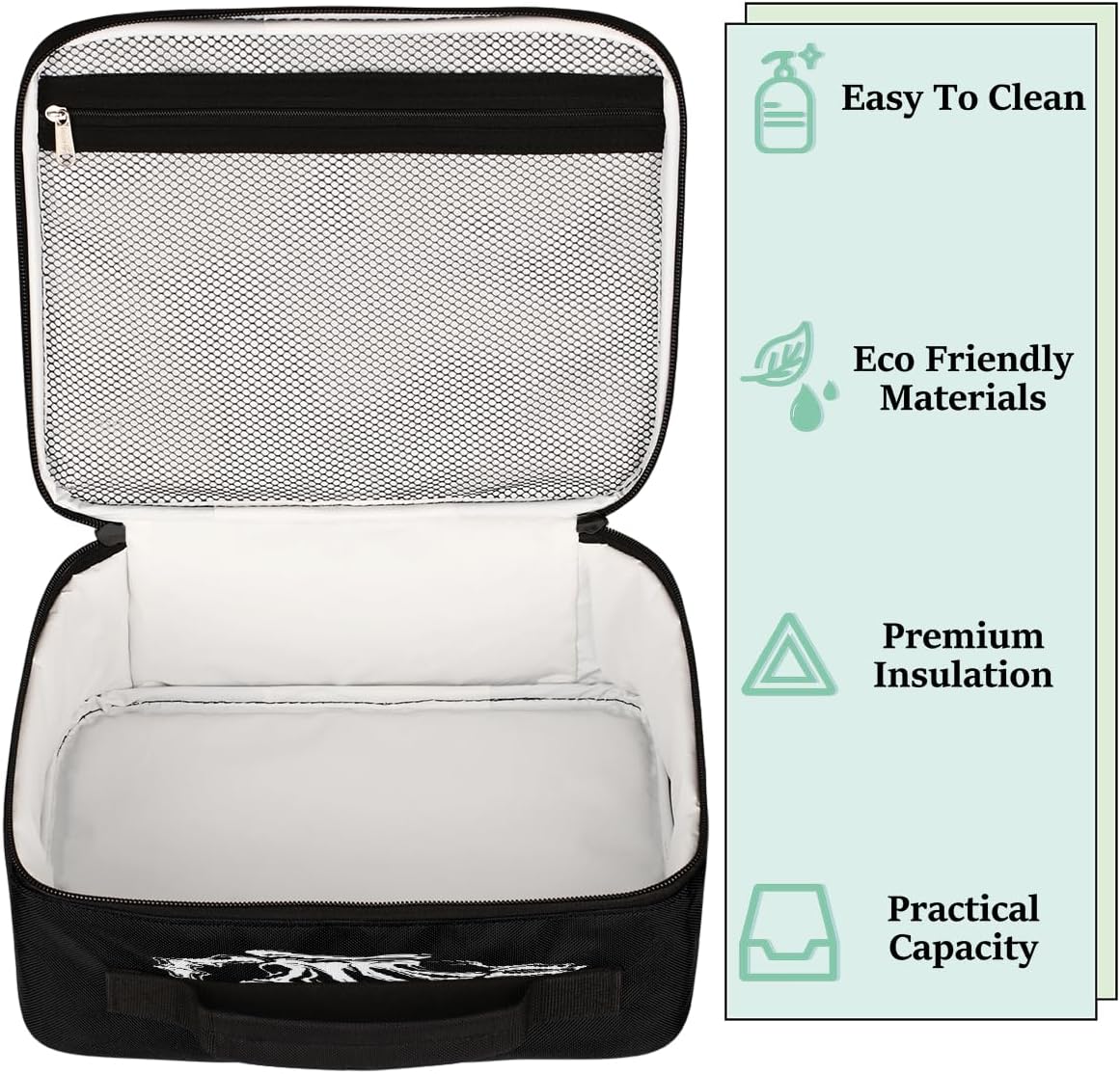 ✿ Dimensioni della borsa portapranzo: 21 x 10 x 26 cm, si adatta perfettamente al tuo portapranzo, frutta, snack e persino bottiglia per frullati proteici ✿ Materiale del contenitore per il pranzo isolato: la borsa per il pranzo riutilizzabile è realizzata in poliestere altamente resistente, facile da pulire, mantiene il cibo o le bevande fresche, calde o fredde per diverse ore, a prova di perdite per l'uso quotidiano Grande capacità: 1 tasca principale con cerniera per riporre facilmente molte cose, come bevande, snack, panini, frutta o verdura; 1 tasca frontale esterna con cerniera per riporre caramelle, chiavi, telefono e altri piccoli oggetti da portare in ufficio, escursioni, viaggi, feste ✿ Piume: la nostra borsa per il pranzo ha 1 tasca principale con cerniera per mantenere cibi e bevande caldi o freschi, 1 grande tasca frontale per chiavi, carte, telefoni e così via. È molto facile da portare ovunque come viaggi, spiaggia e sport; è facile da trasportare, a tracolla, inoltre, la tracolla può essere rimossa e trasformata in una borsa portatile per i pasti ✿ Regalo perfetto: motivi unici, regali unici, ideali per gli amici durante il festival, come compleanno, Natale, giorno della scuola
