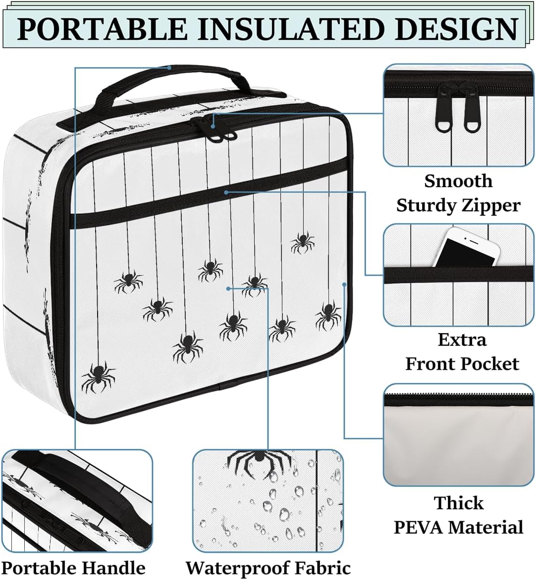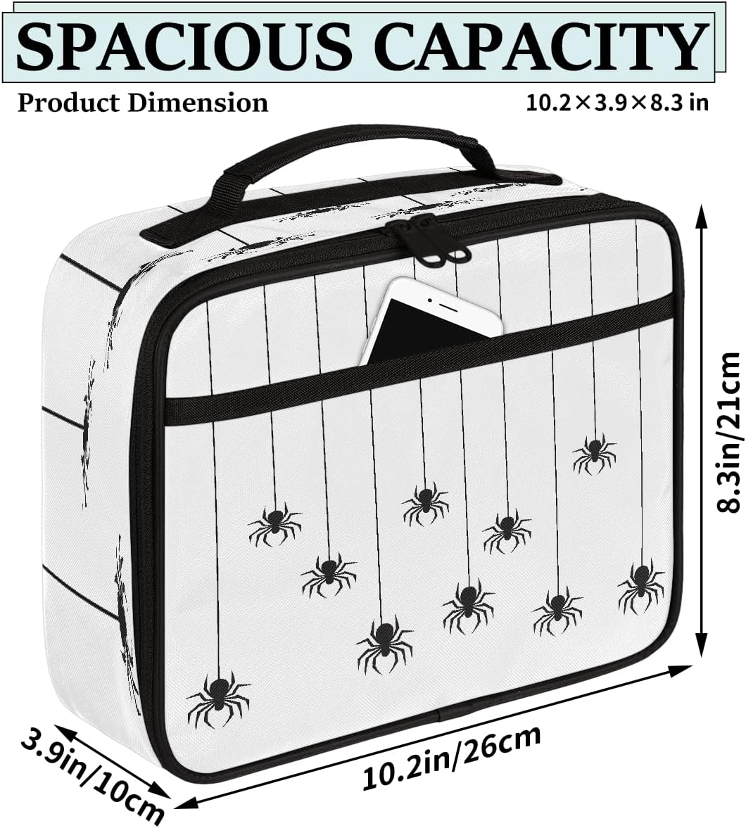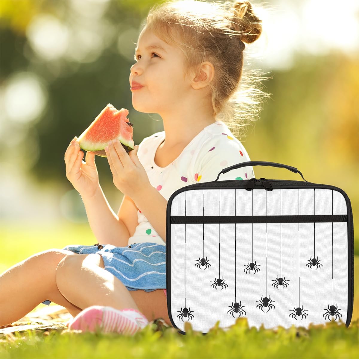 Borsa per il pranzo per bambini Halloween ragni neri stringhe borsa per il pranzo per ragazzi ragazze riutilizzabile isolata bento tote bag per scuola picnic lavoro