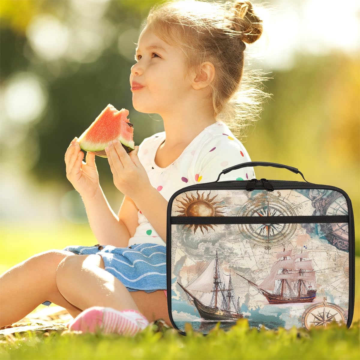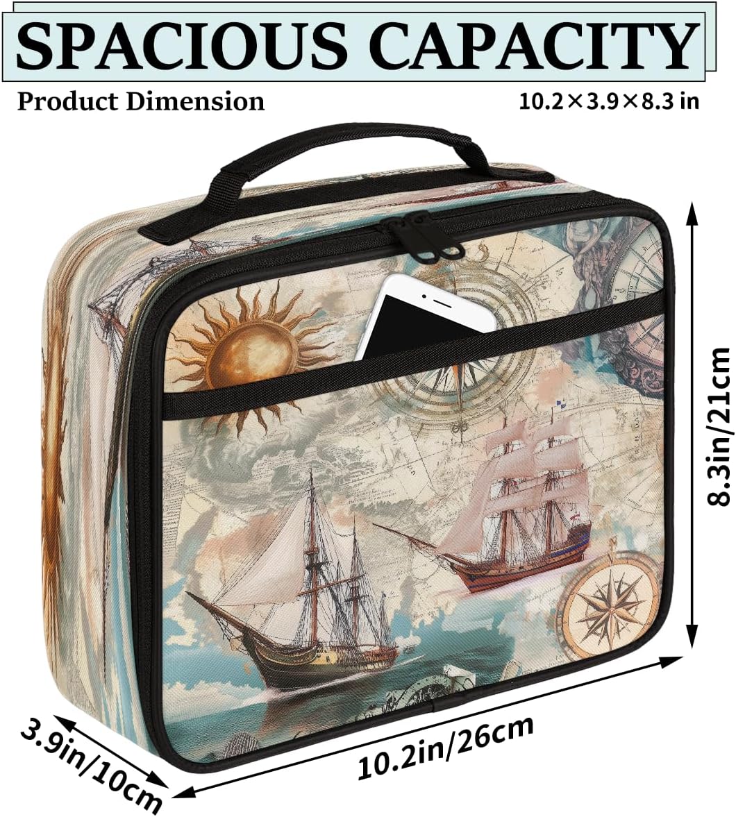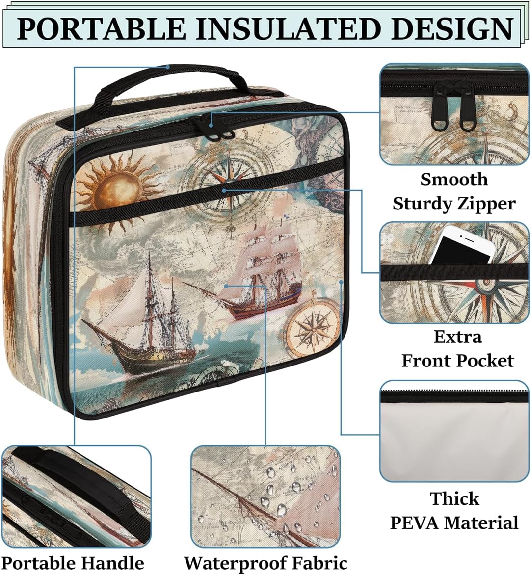 Borsa per il pranzo per bambini in stile nautico retrò, con bussola, borsa per il pranzo, per ragazzi e ragazze, riutilizzabile, isolata, bento, per scuola, picnic, lavoro