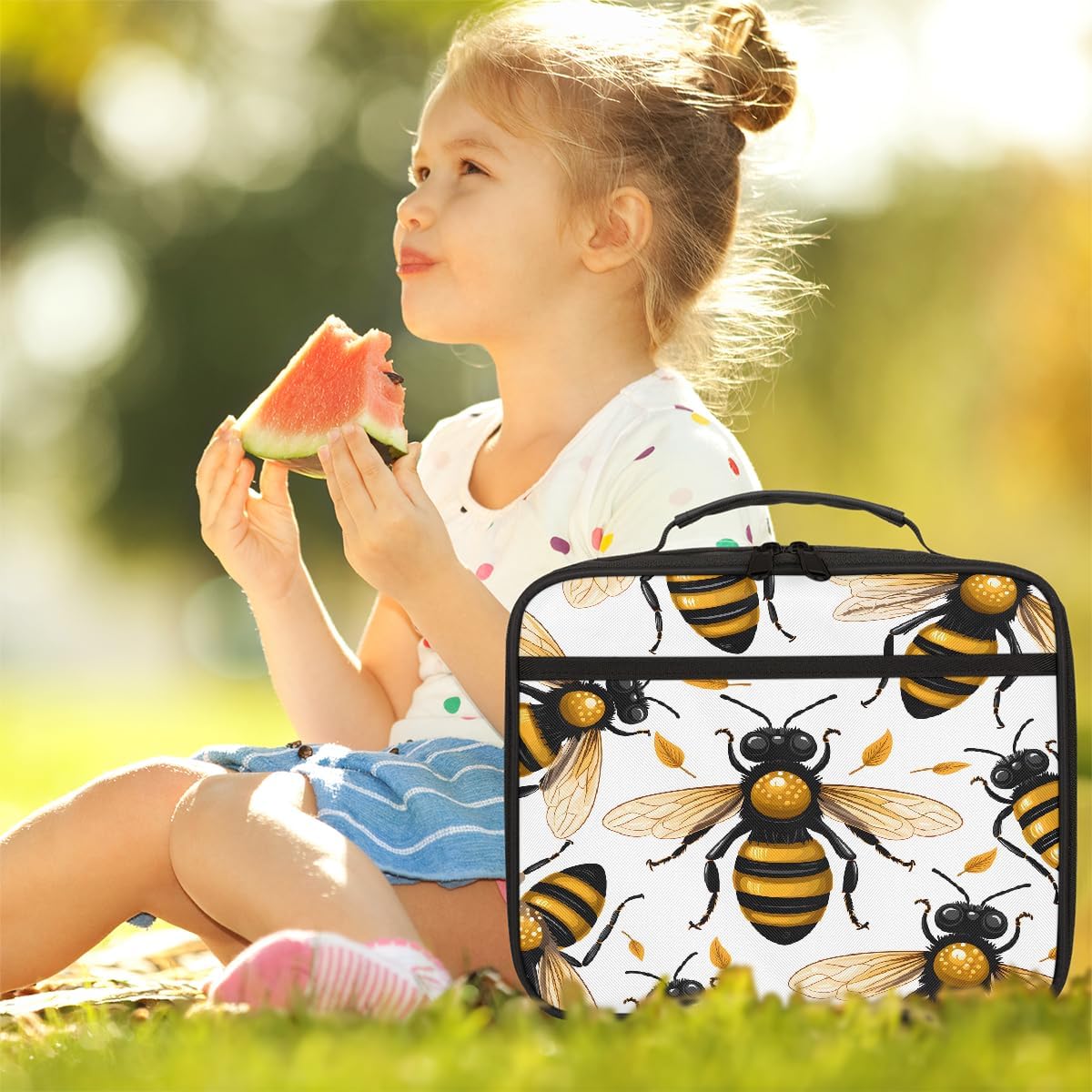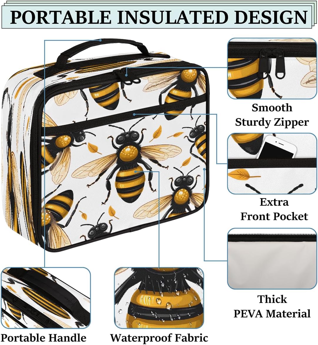 Borsa per il pranzo per bambini, motivo ape, borsa per il pranzo per ragazzi e ragazze, riutilizzabile, isolata, bento, per scuola, picnic, lavoro