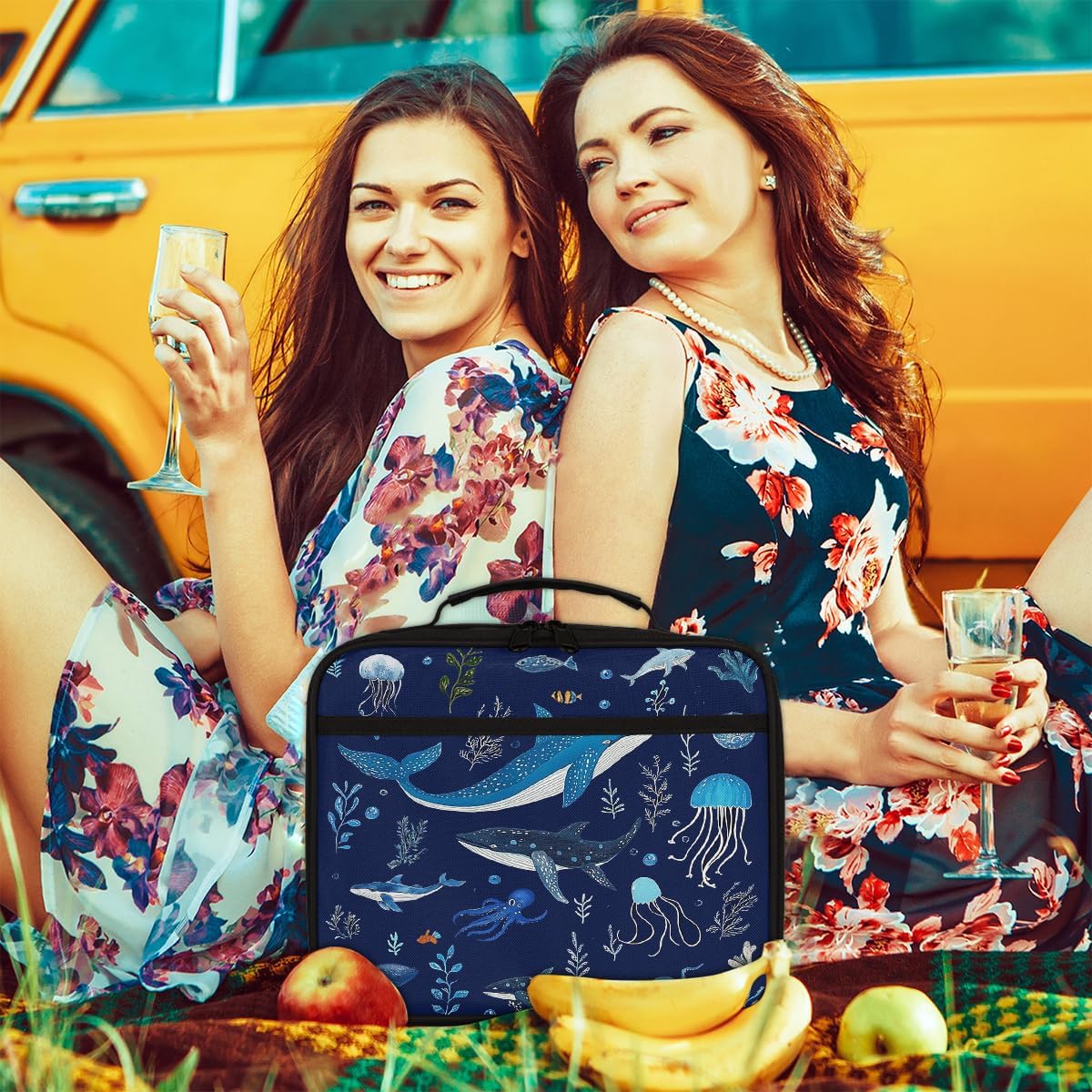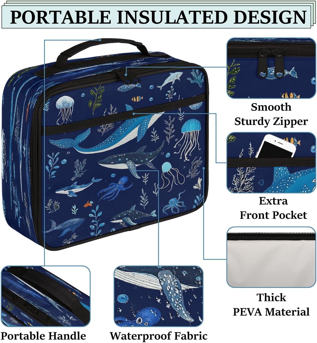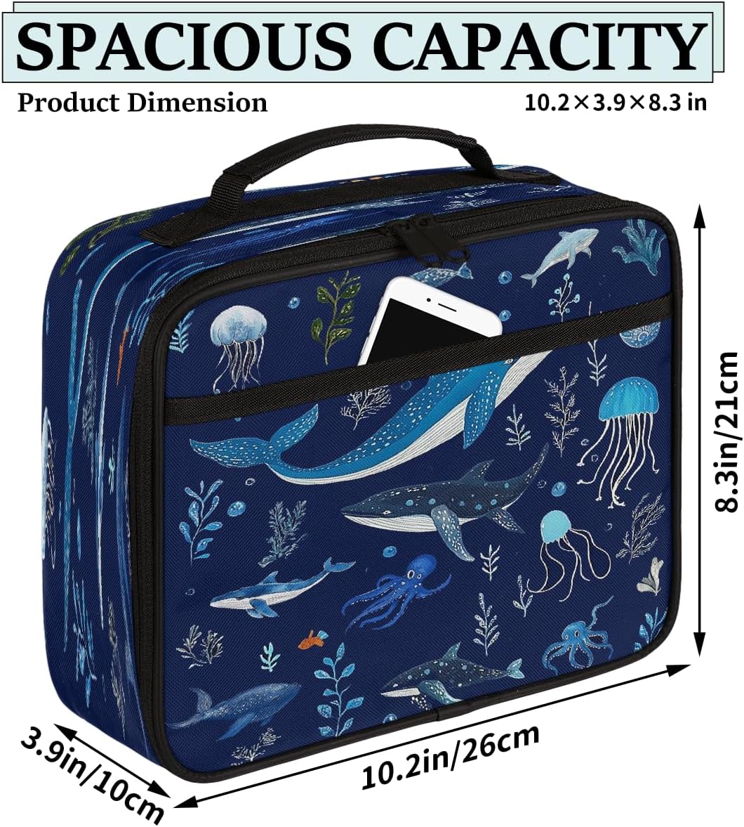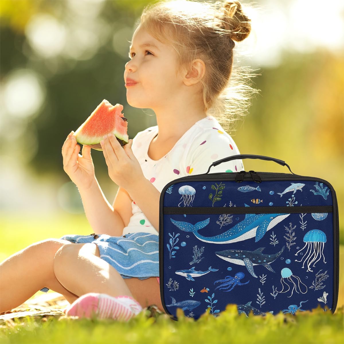 Borsa per il pranzo per bambini, motivo: balena subacquea, medusa, borsa per il pranzo per ragazzi e ragazze, riutilizzabile, isolata, bento, per scuola, picnic, lavoro