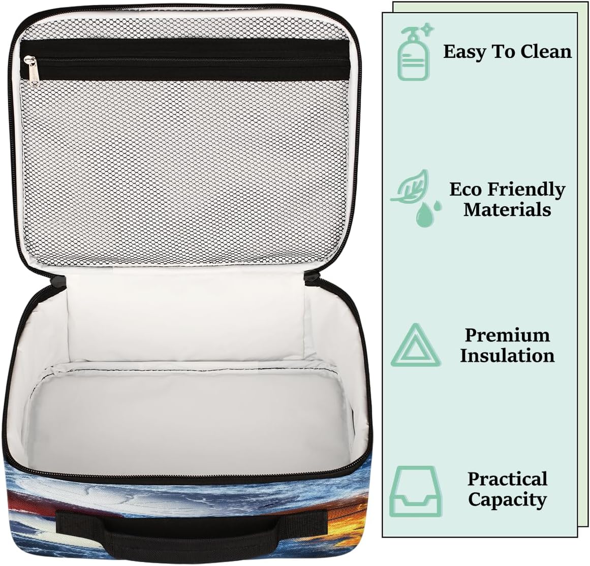 ✿ Dimensioni della borsa portapranzo: 21 x 10 x 26 cm, si adatta perfettamente al tuo portapranzo, frutta, snack e persino bottiglia per frullati proteici ✿ Materiale del contenitore per il pranzo isolato: la borsa per il pranzo riutilizzabile è realizzata in poliestere altamente resistente, facile da pulire, mantiene il cibo o le bevande fresche, calde o fredde per diverse ore, a prova di perdite per l'uso quotidiano Grande capacità: 1 tasca principale con cerniera per riporre facilmente molte cose, come bevande, snack, panini, frutta o verdura; 1 tasca frontale esterna con cerniera per riporre caramelle, chiavi, telefono e altri piccoli oggetti da portare in ufficio, escursioni, viaggi, feste ✿ Piume: la nostra borsa per il pranzo ha 1 tasca principale con cerniera per mantenere cibi e bevande caldi o freschi, 1 grande tasca frontale per chiavi, carte, telefoni e così via. È molto facile da portare ovunque come viaggi, spiaggia e sport; è facile da trasportare, a tracolla, inoltre, la tracolla può essere rimossa e trasformata in una borsa portatile per i pasti ✿ Regalo perfetto: motivi unici, regali unici, ideali per gli amici durante il festival, come compleanno, Natale, giorno della scuola