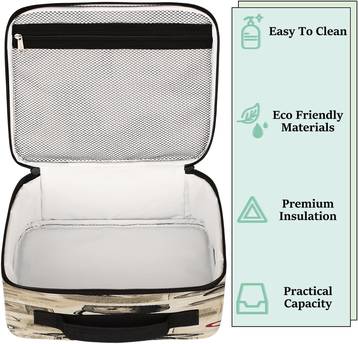 Borsa per il pranzo per bambini, stile vintage, con tazza da caffè, per ragazzi e ragazze, riutilizzabile, isolata, bento, per scuola, picnic, lavoro