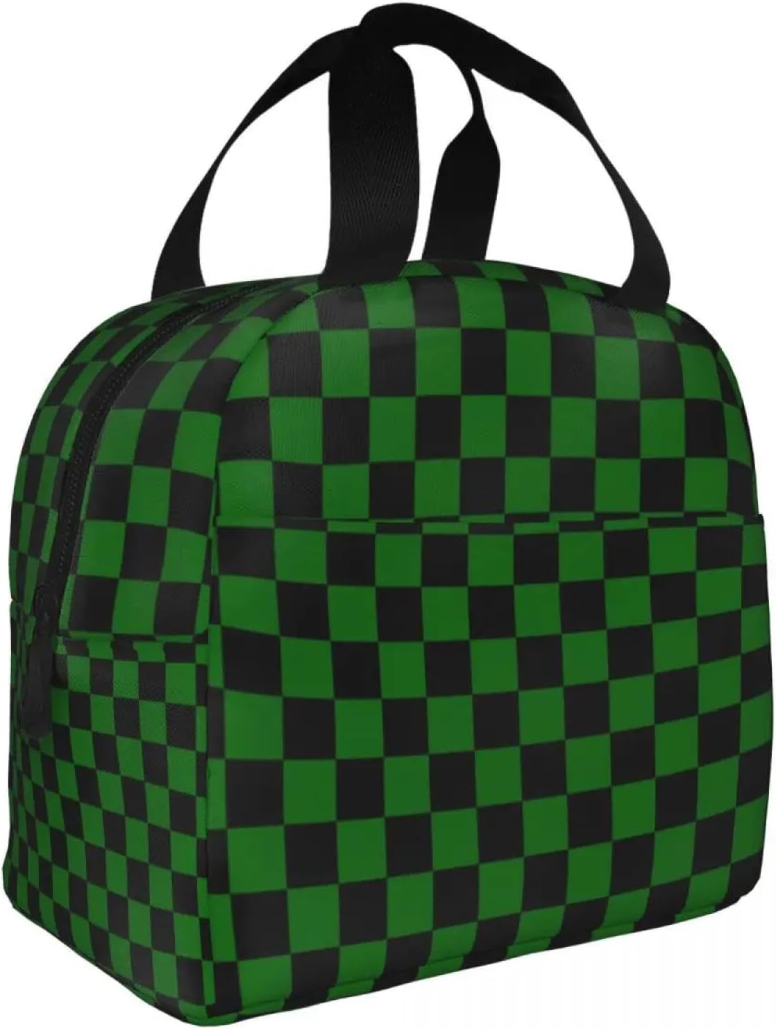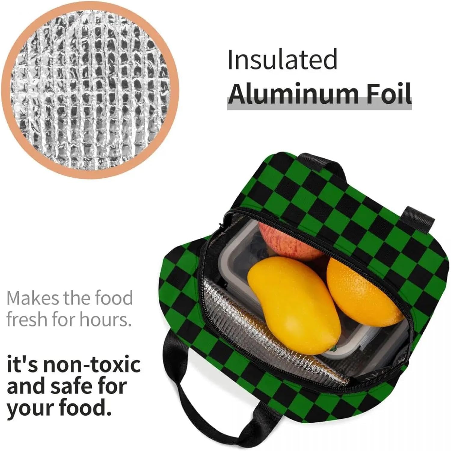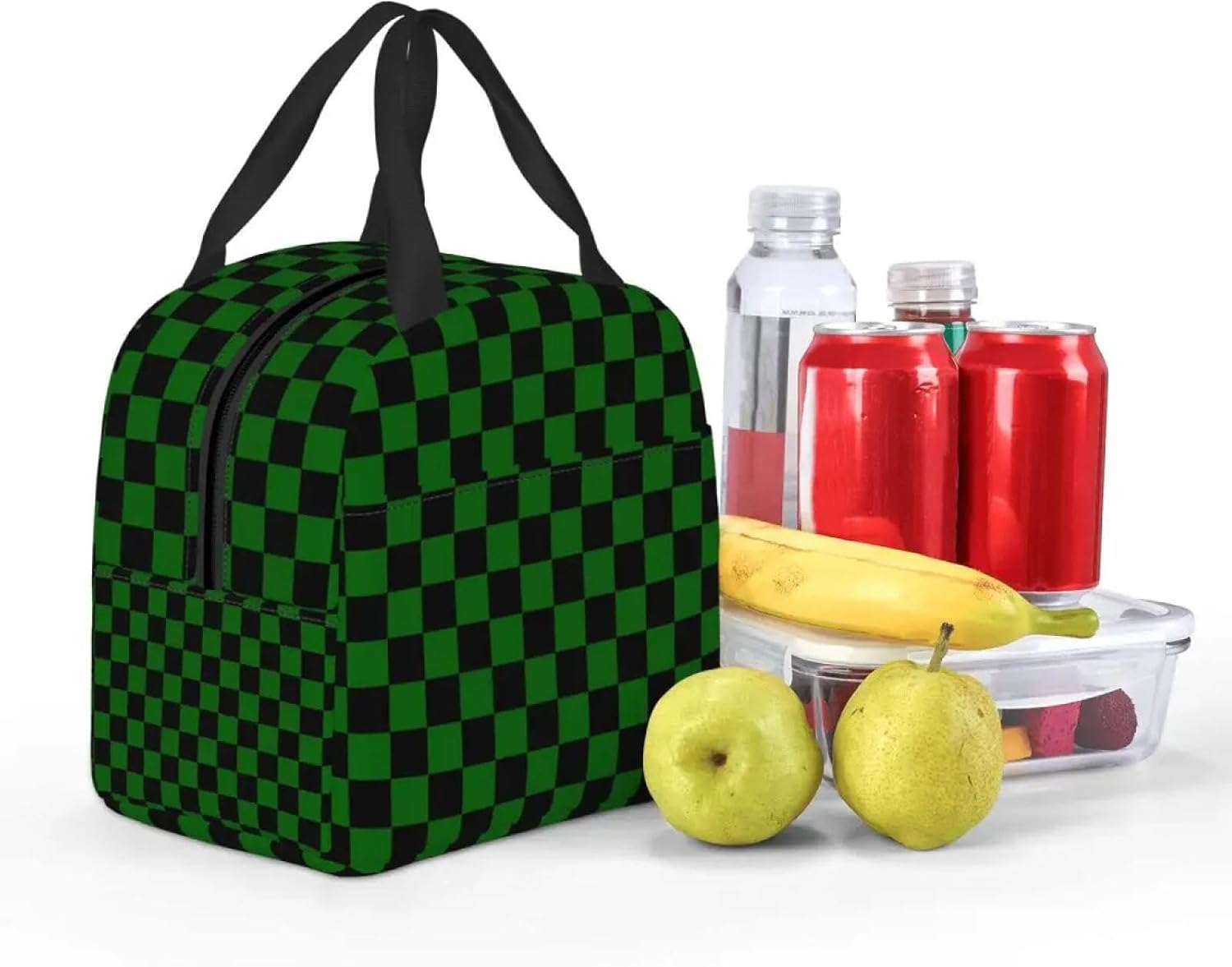 Borsa per Il Pranzo Scozzese a Scacchiera Nera e Verde Scuro Personalizzata Uomo Donna Scatole per Il Pranzo Isolate Calde per la Scuola studentesca